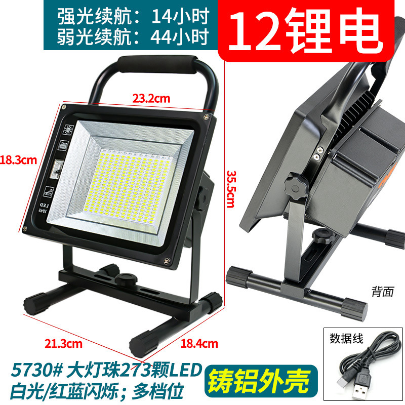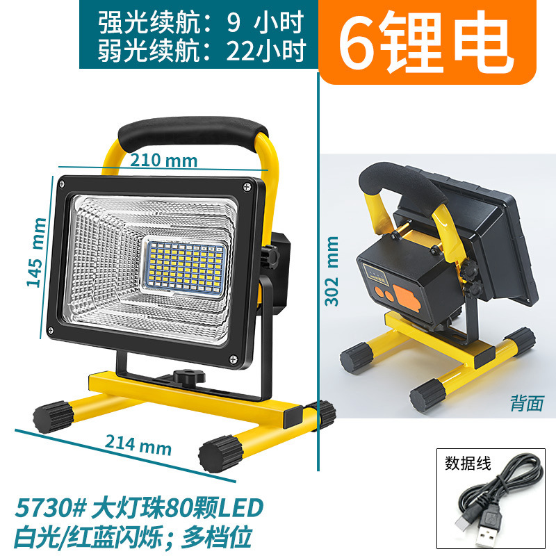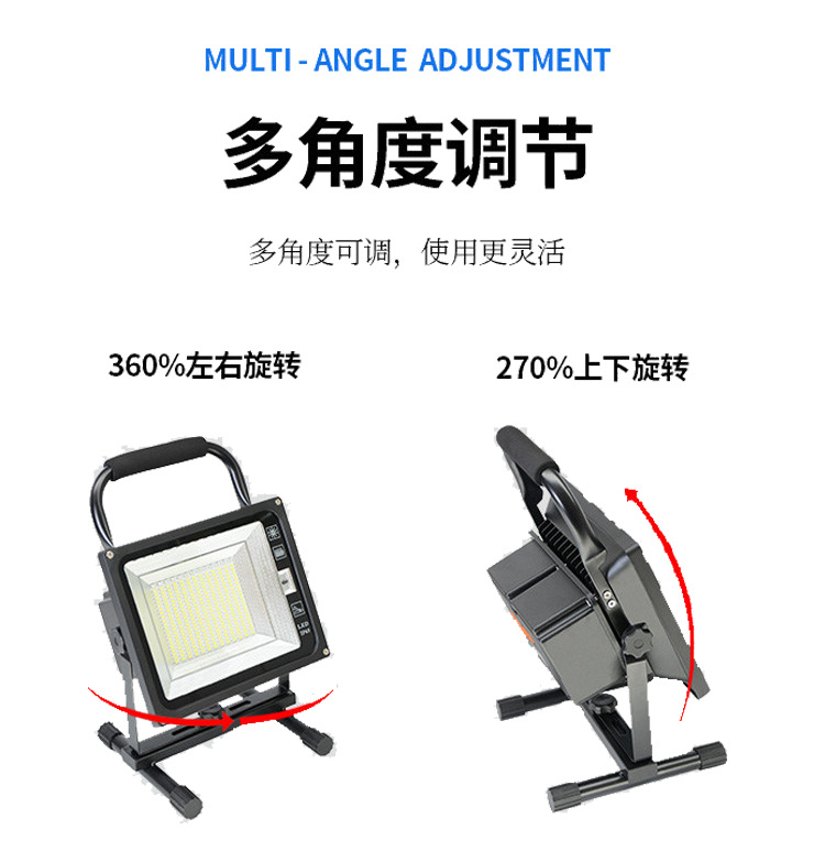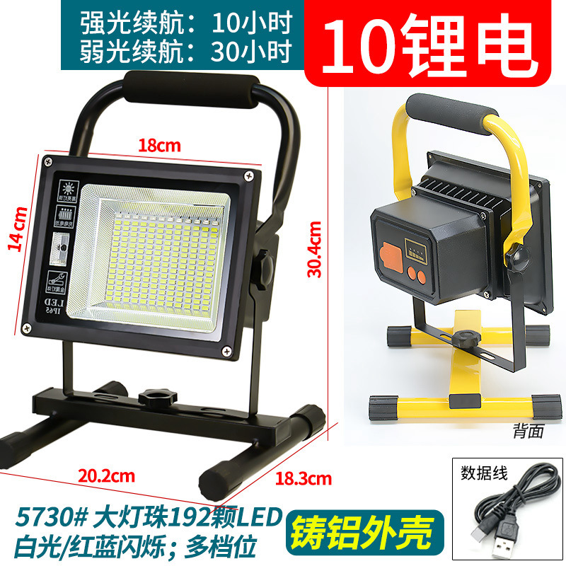 LED充電投光燈手電手提家用應急照明泛光投射戶外野營露營燈遙控