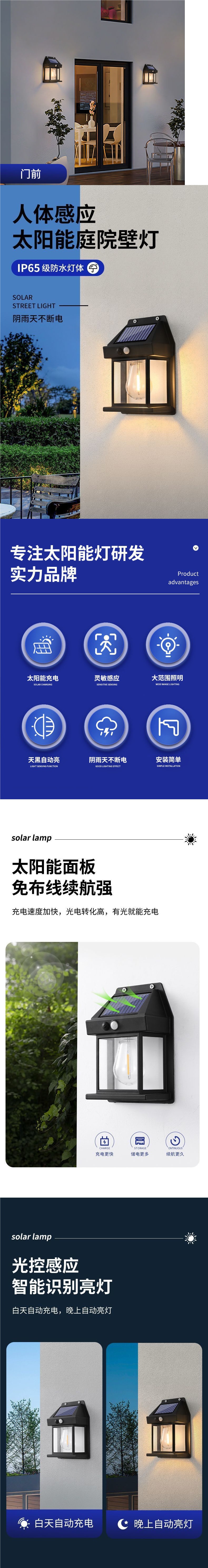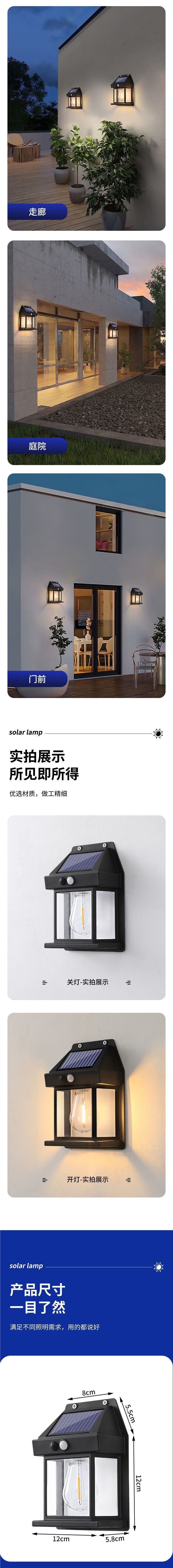 新款復古太陽能壁燈戶外照明防水鎢絲燈感應庭院燈花園別墅小夜燈