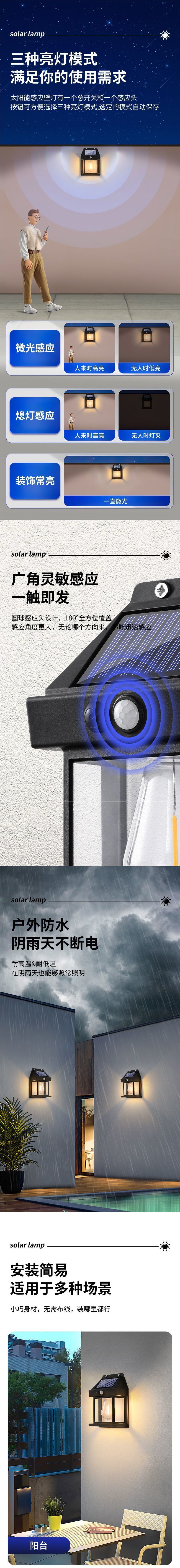 | 顔色 | E300低亮款-低鋰電【有感應功能】-黑色(耐髒型).LED太陽能新中式壁燈 |