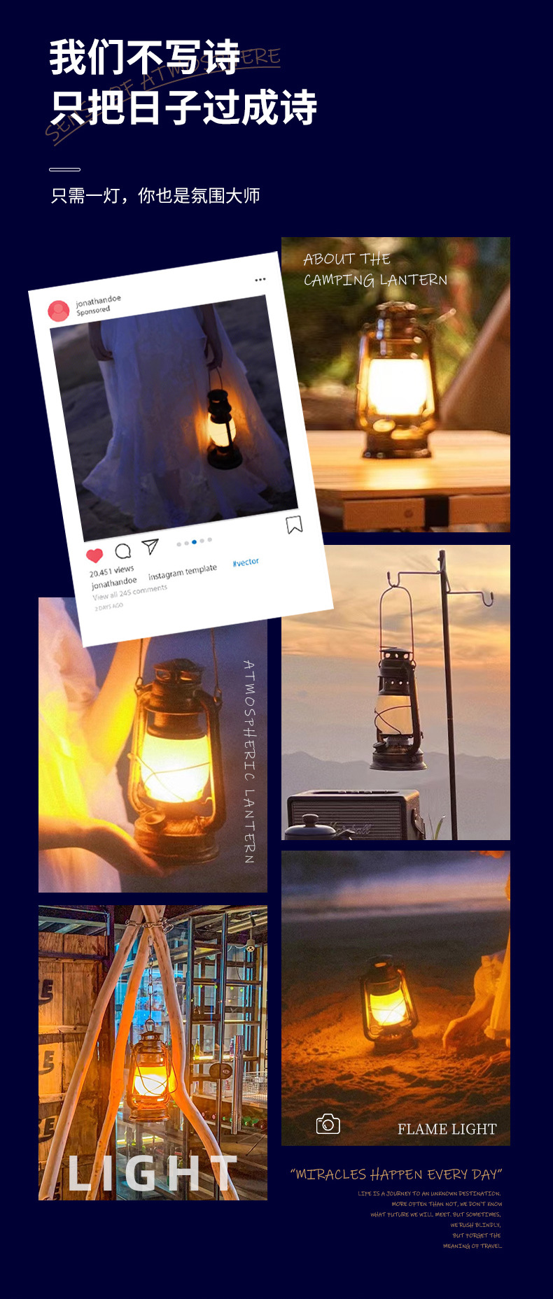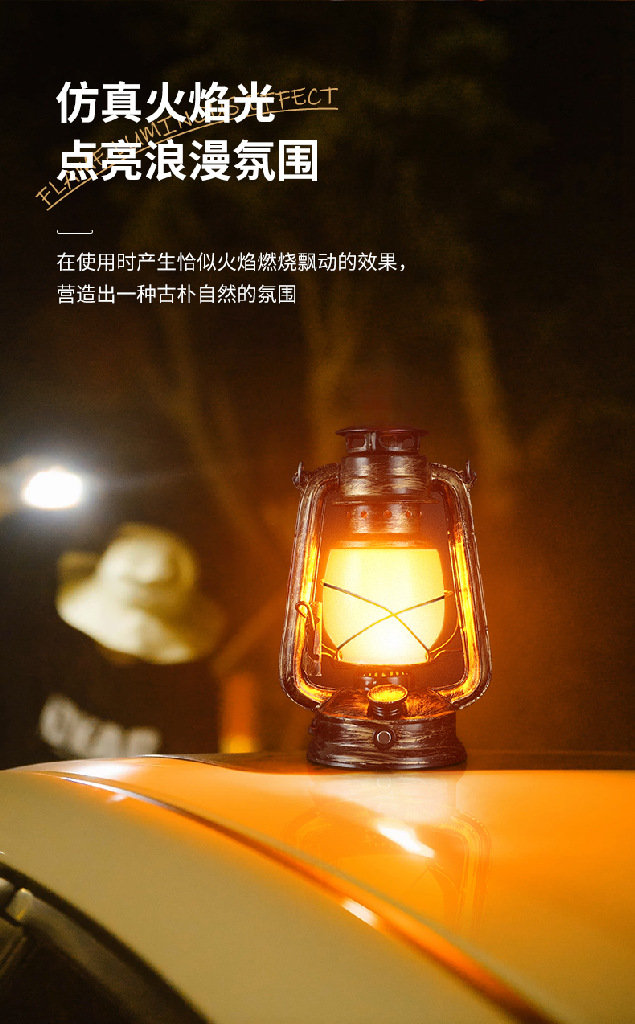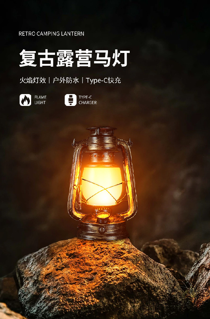 露營燈戶外充電復古馬燈營地野營氛圍煤油手提擺攤帳篷燈裝飾火焰