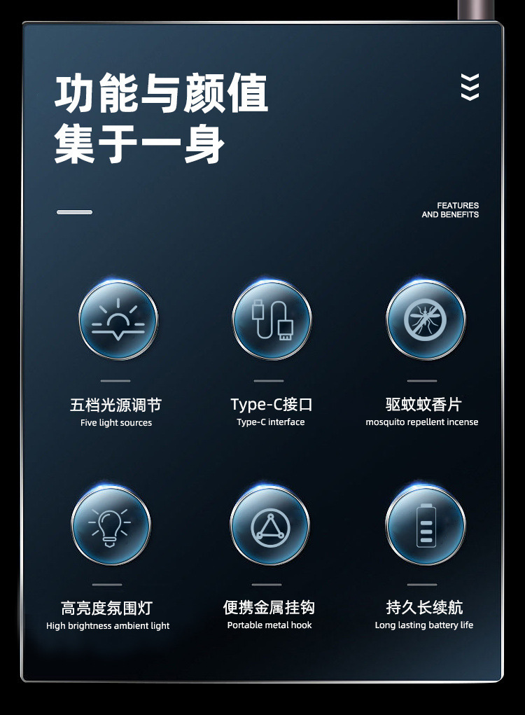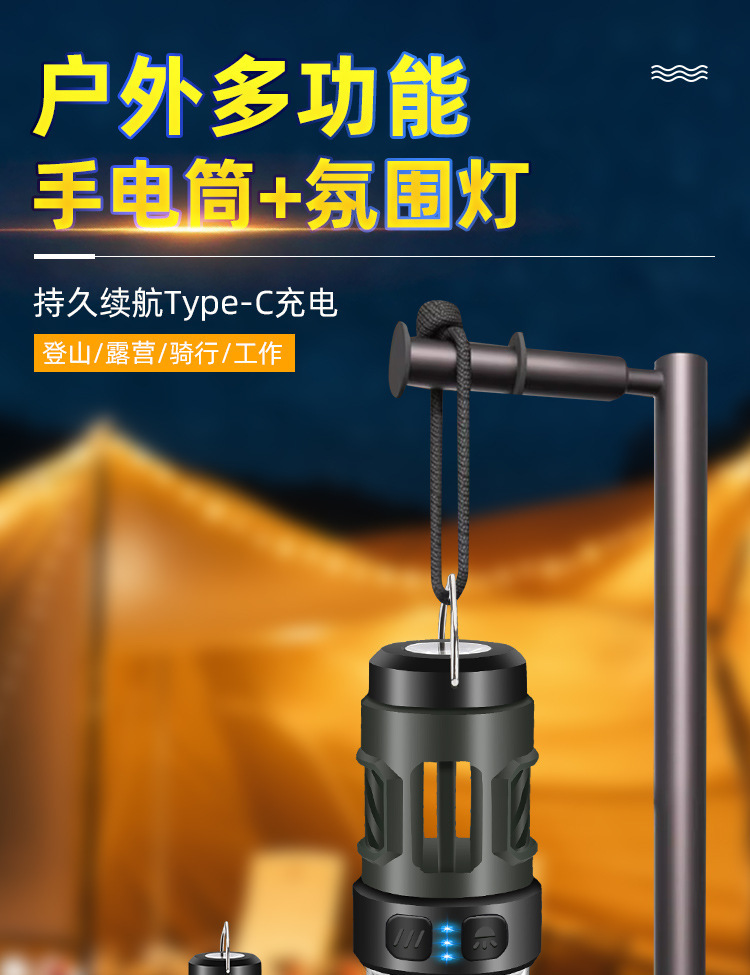 戶外露營燈可攜式小夜燈可攜式手電筒三腳支架照明燈塔驅蚊帳篷氛圍燈