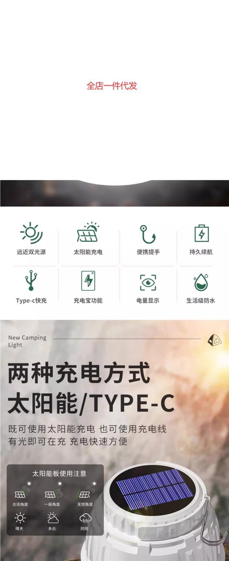 太陽能露營燈夜市擺攤照明停電應急燈充電超長續航戶外帳篷燈掛燈