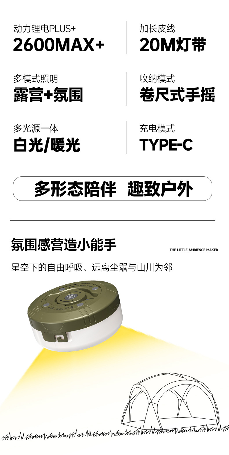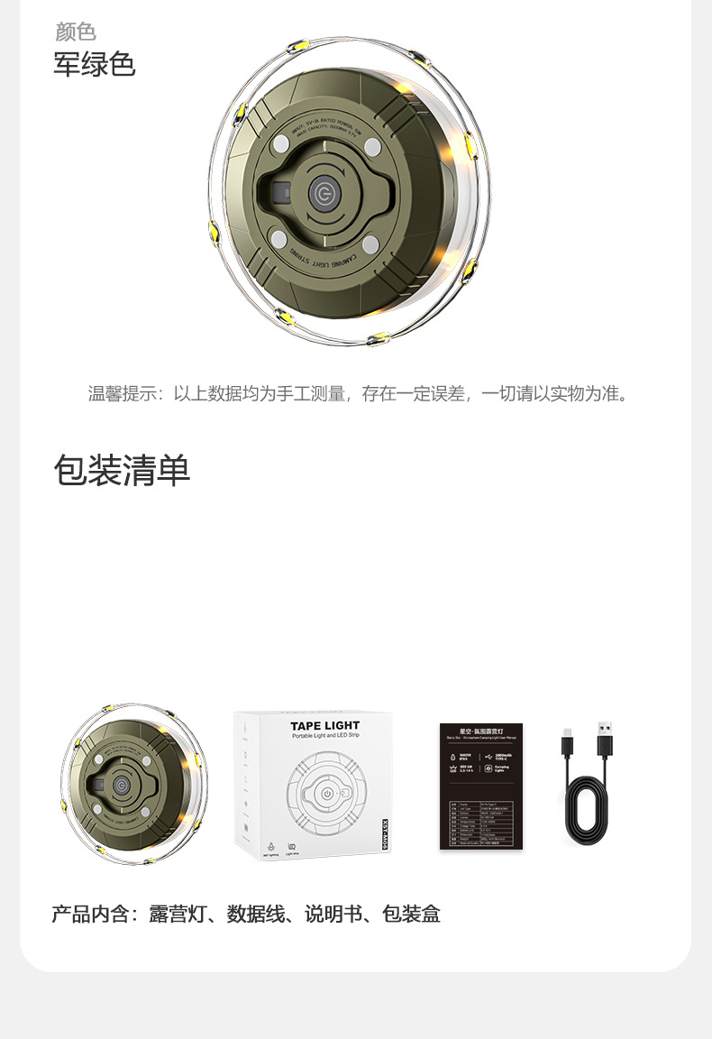 | 顔色 | +【軍綠色-高配】20米燈帶/6檔調光/2600mAh/磁吸可攜式/防水防塵/TYPE-C快充~ |