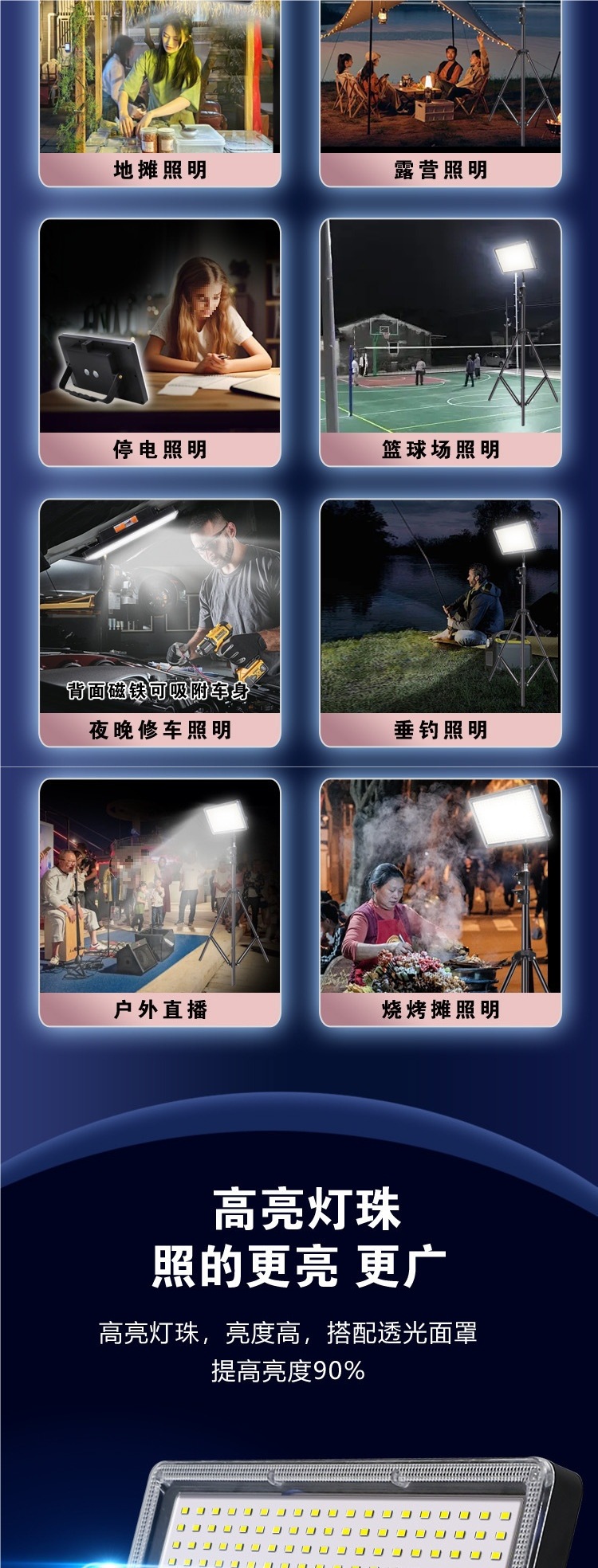 擺攤夜市燈充電應急燈補光燈移動戶外照明強光支架野外露營燈