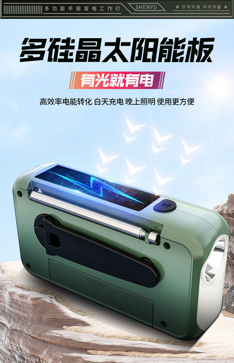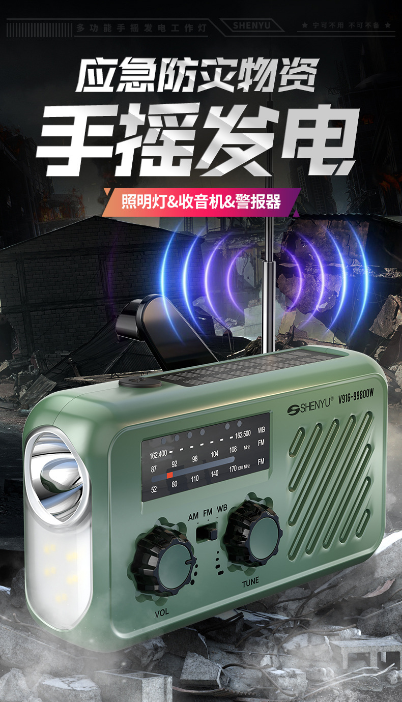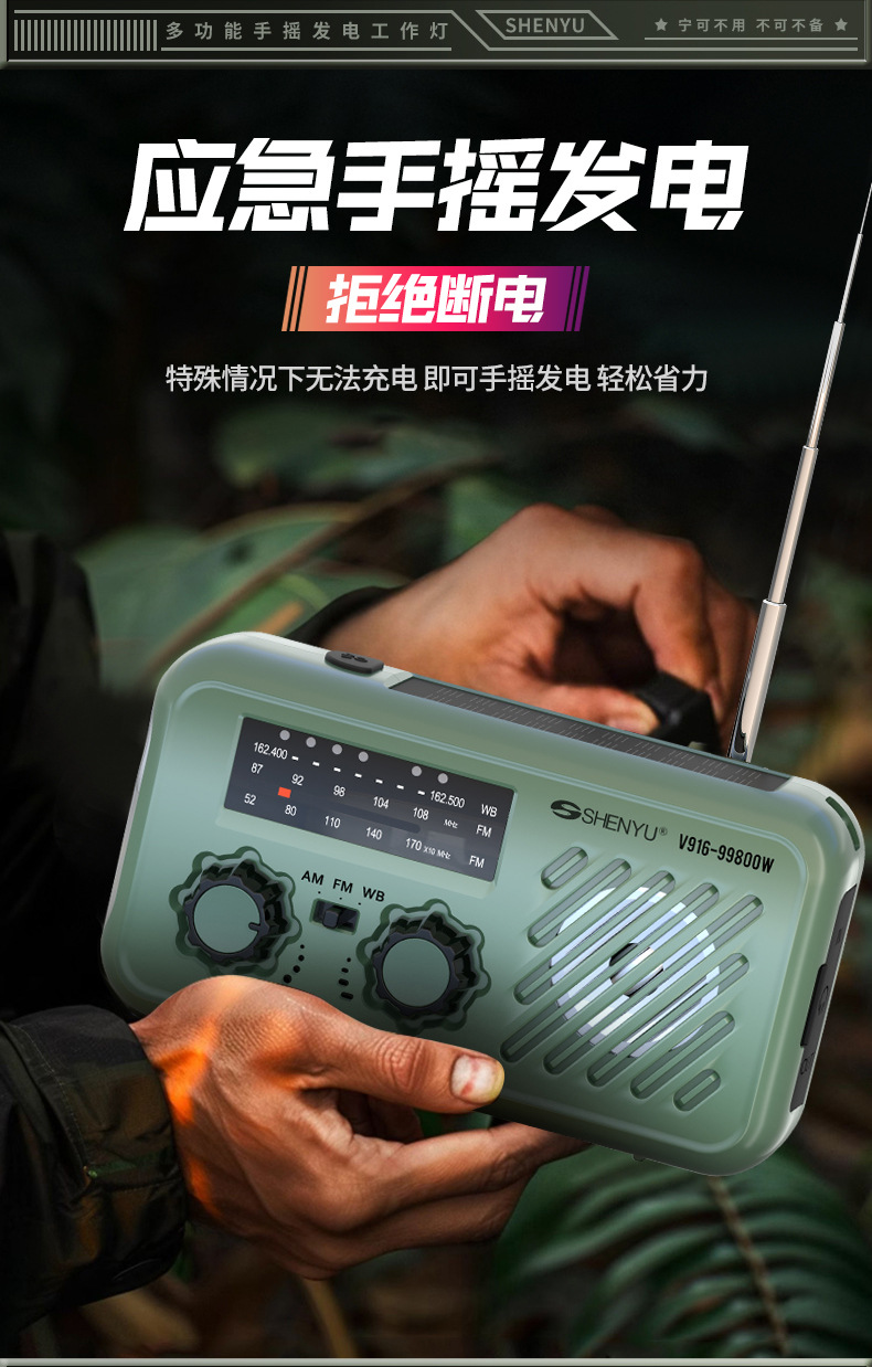 新款全波段手搖髮電收音機戶外應急SOS太陽能收音機應急物資配備