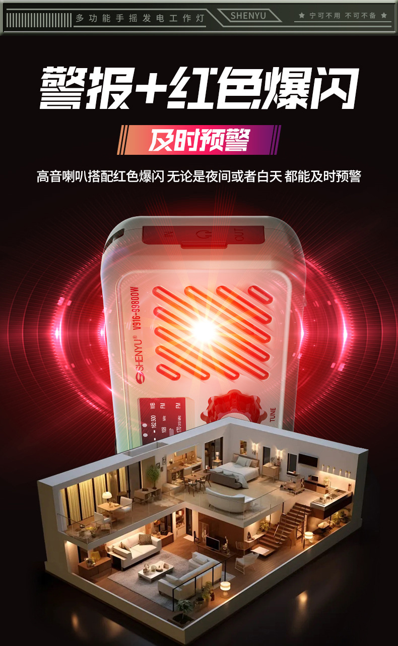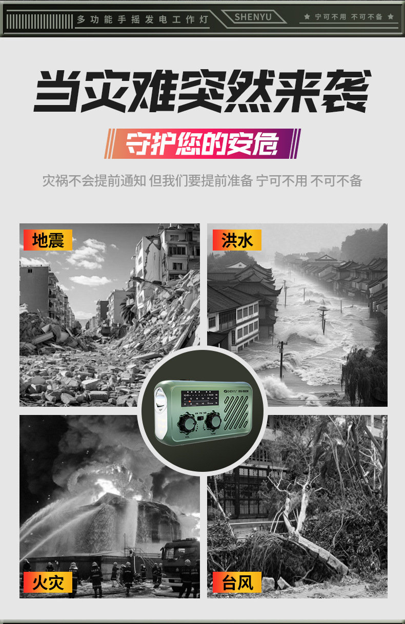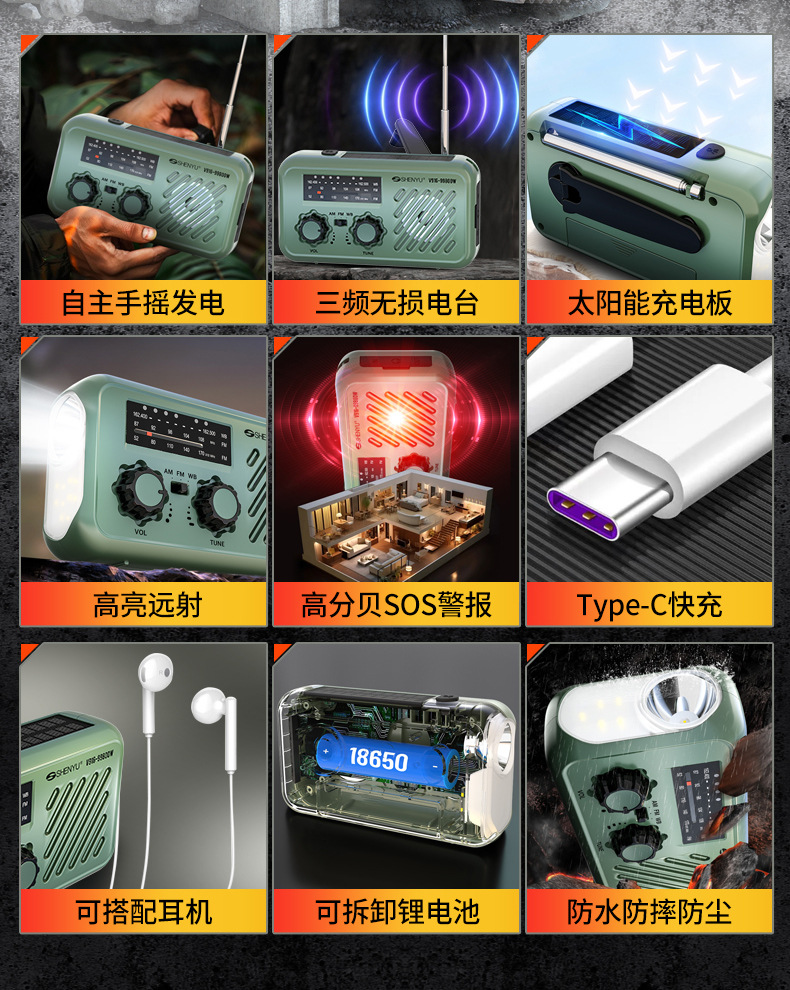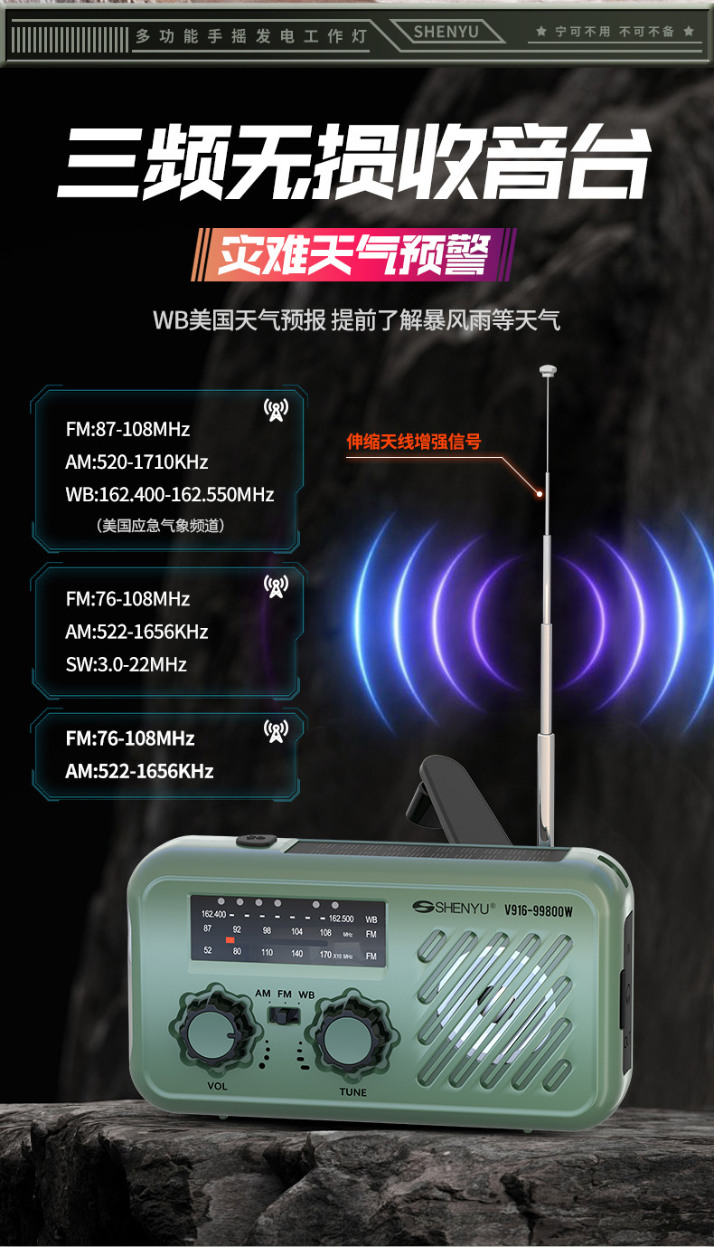 新款全波段手搖髮電收音機戶外應急SOS太陽能收音機應急物資配備