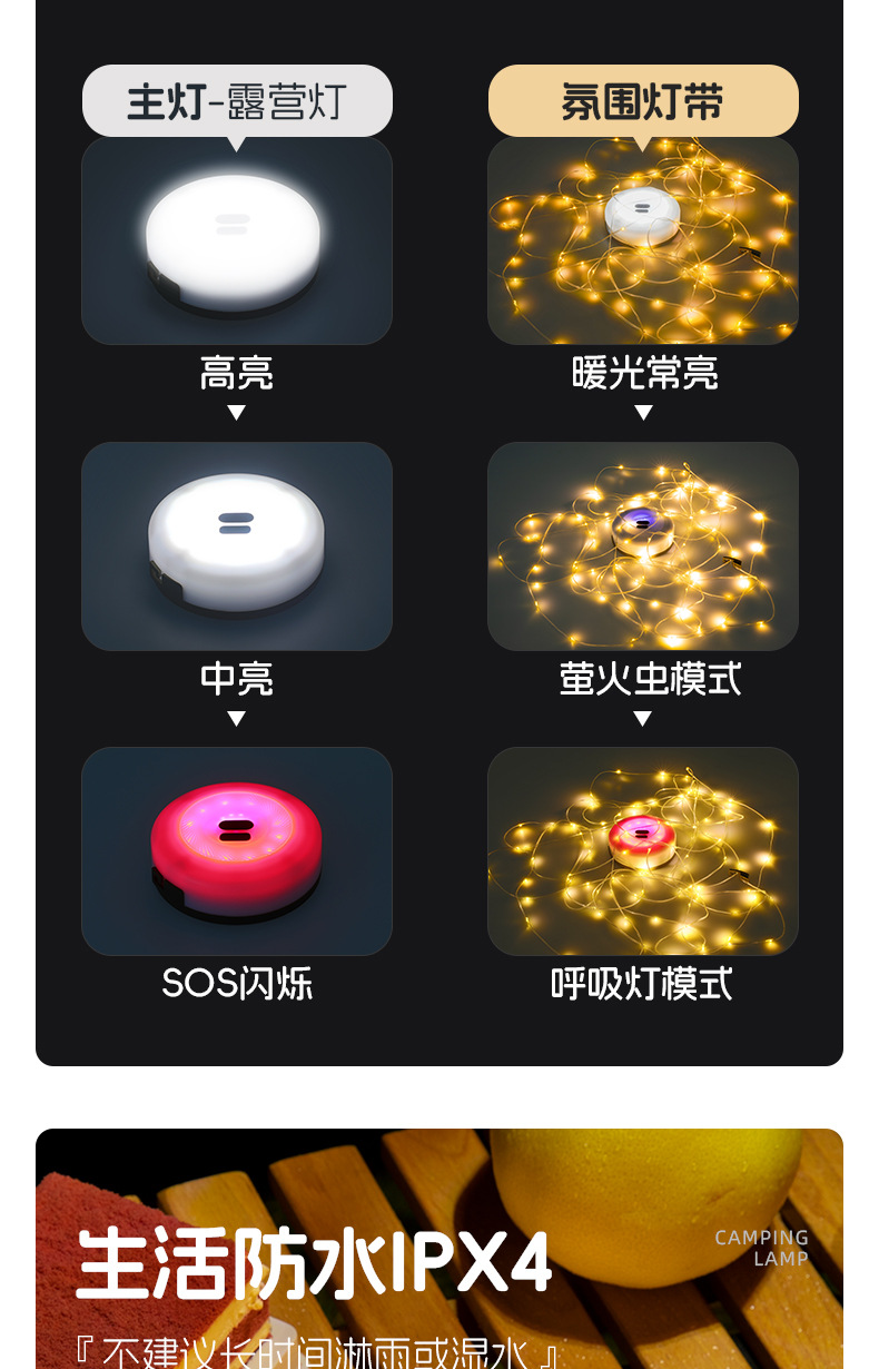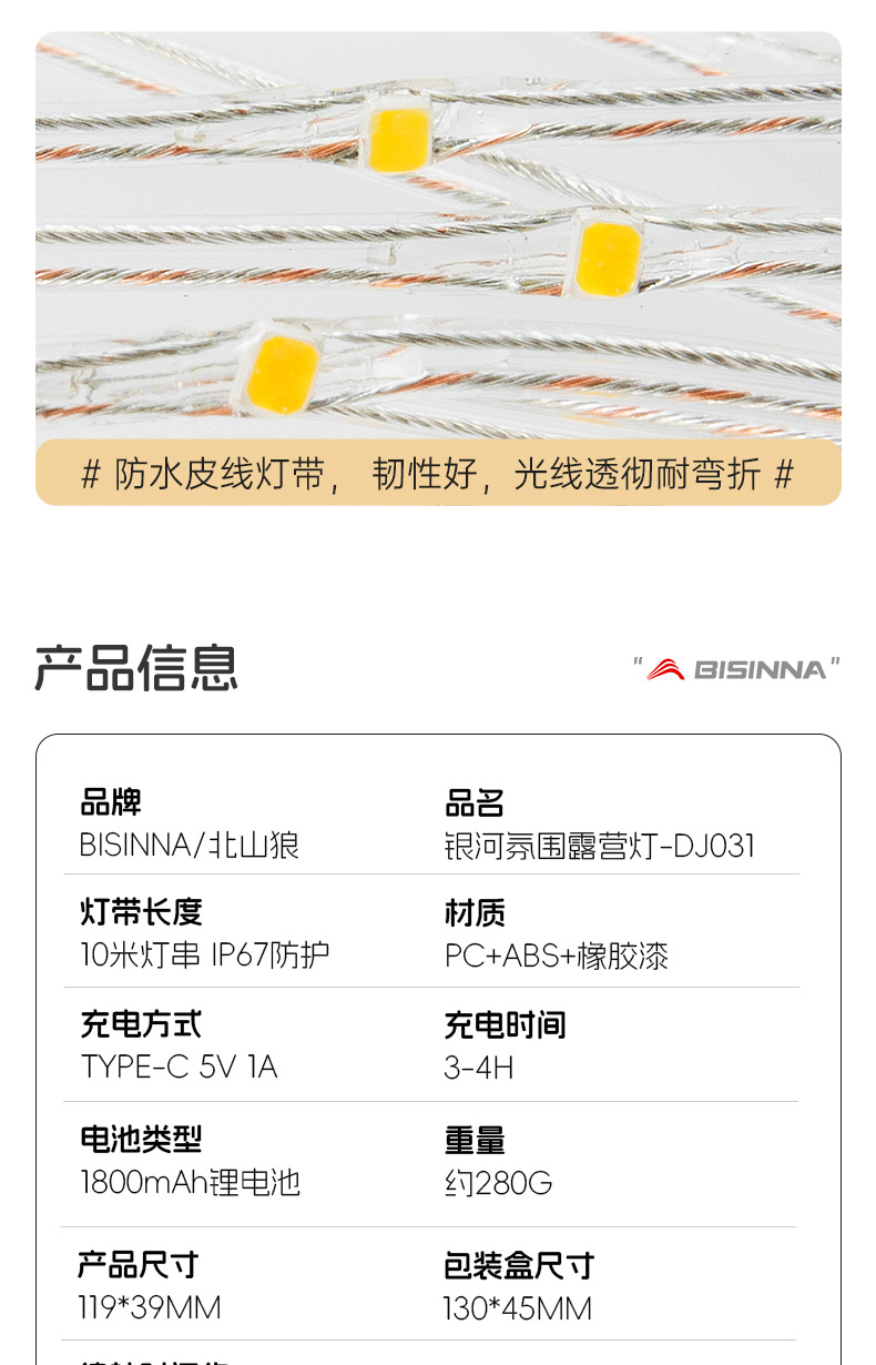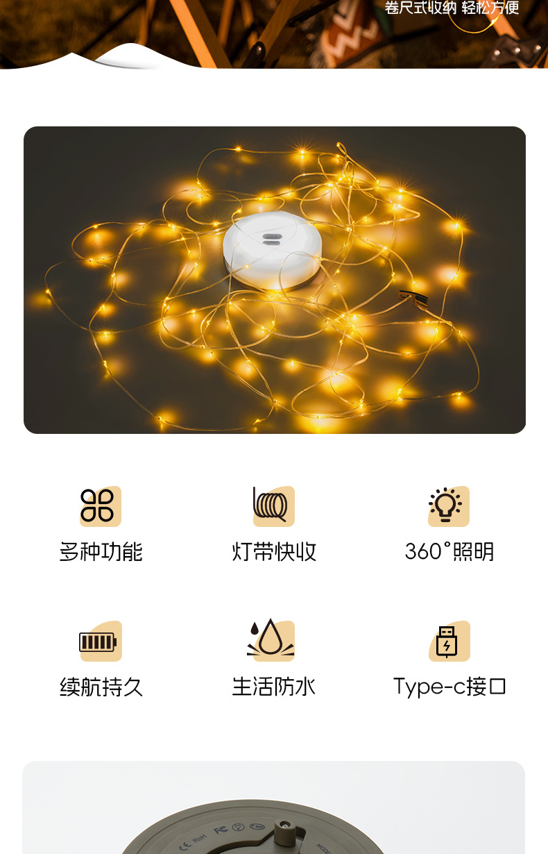 北山狼戶外露營燈防水燈帶氛圍燈帳篷裝飾燈快速收納燈串室內裝飾