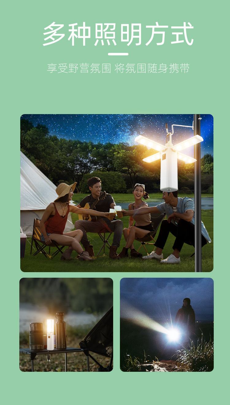 新款戶外多功能便捷折疊露營充電手電筒帳篷吊燈野營燈