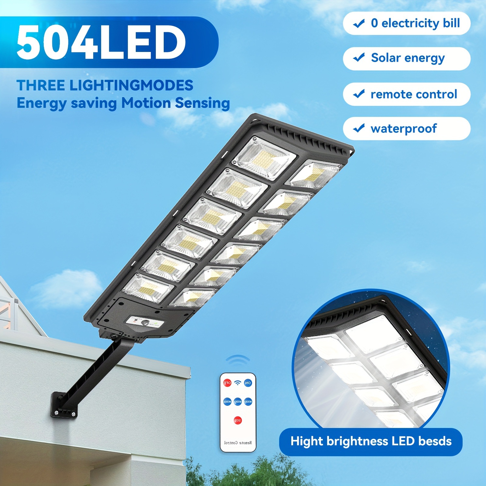 1pc Solar Street Light With Remote Control Solar Street