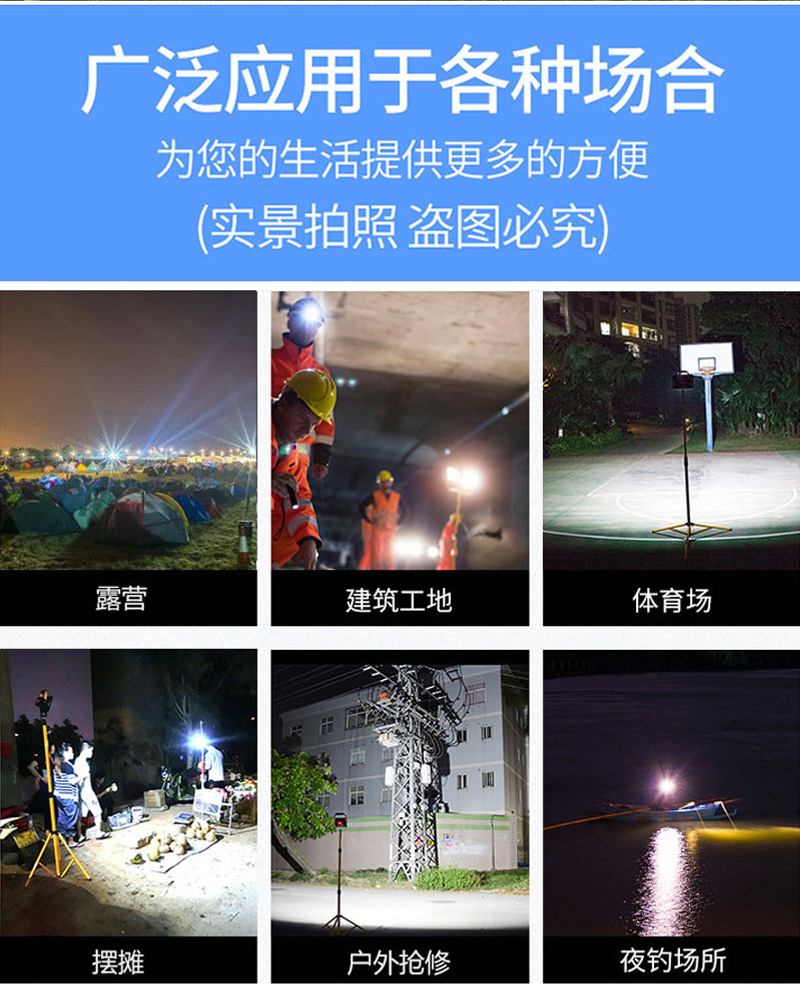 手提led充電投光燈戶外防水超亮強光家用應急照明可攜式工地