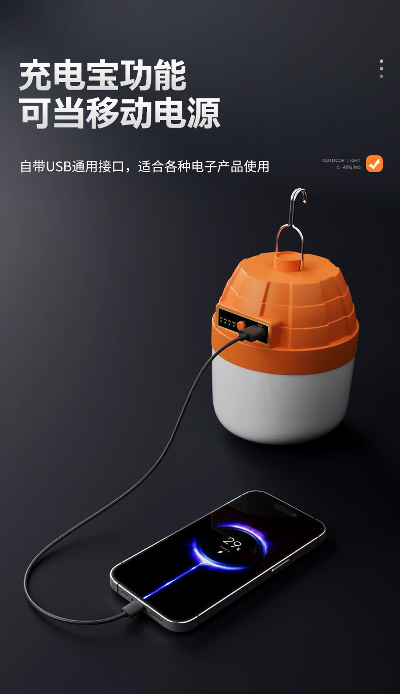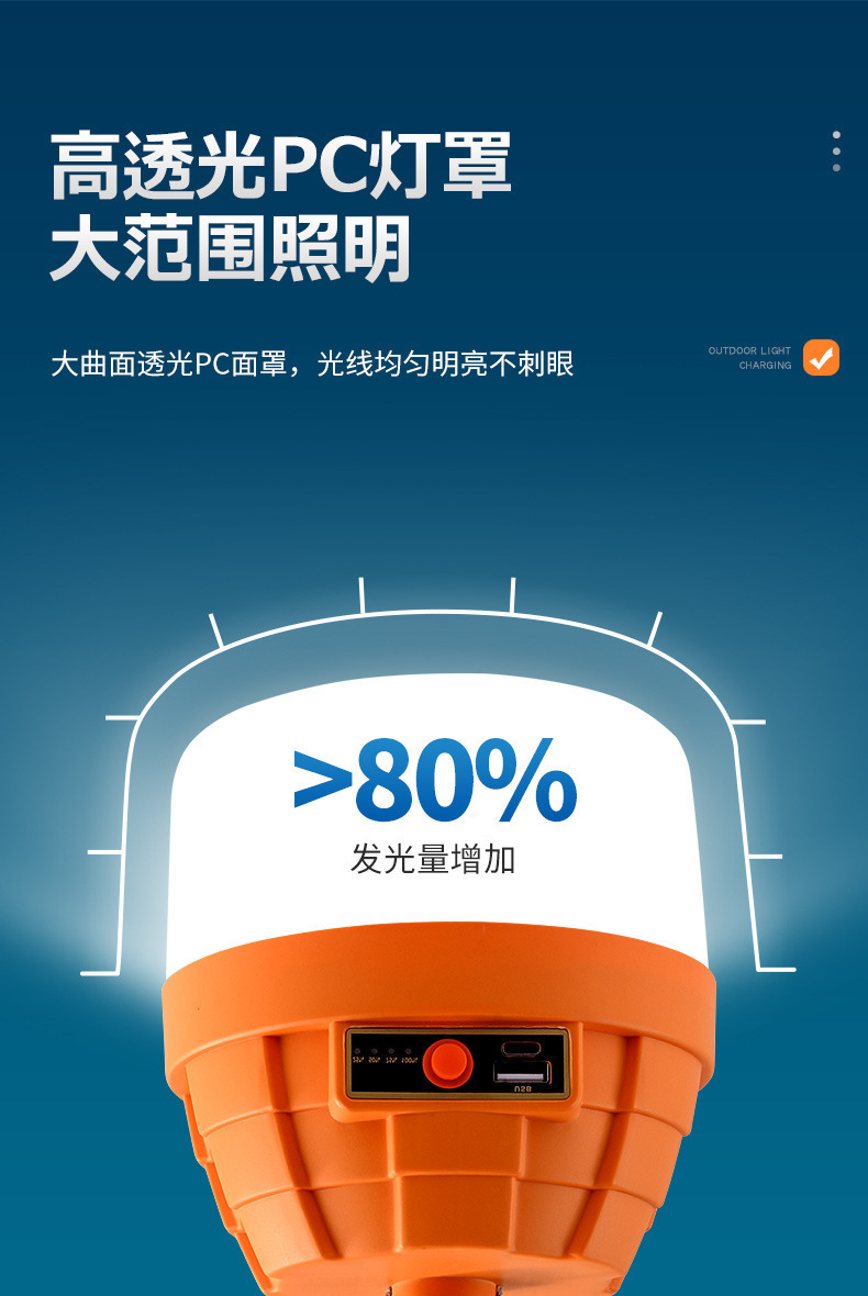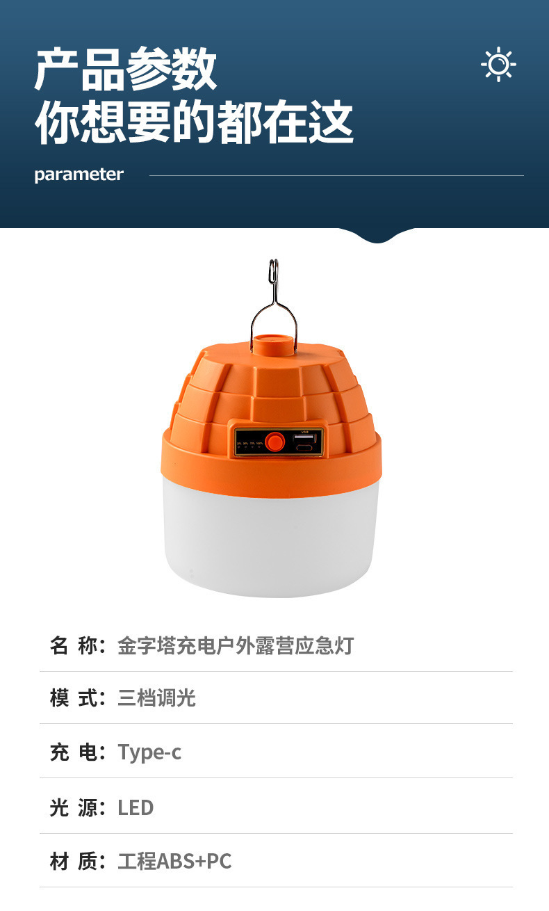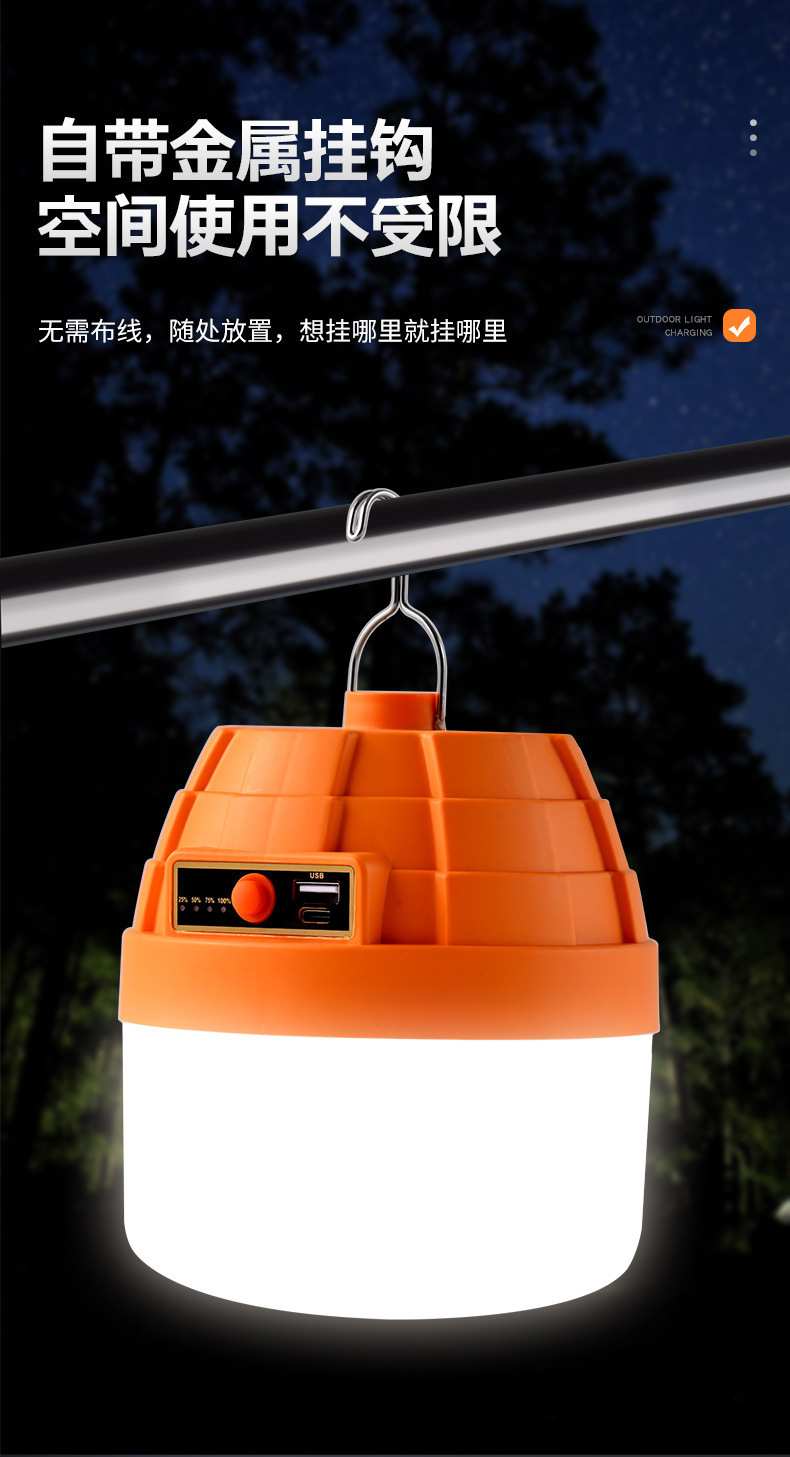 LED露營充電燈 新款金字塔充電燈泡野營長續航超亮夜市擺攤燈