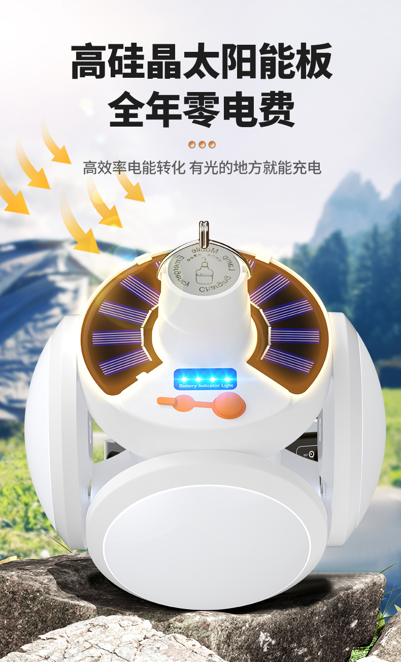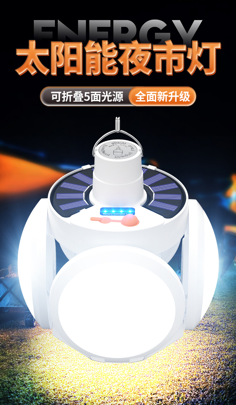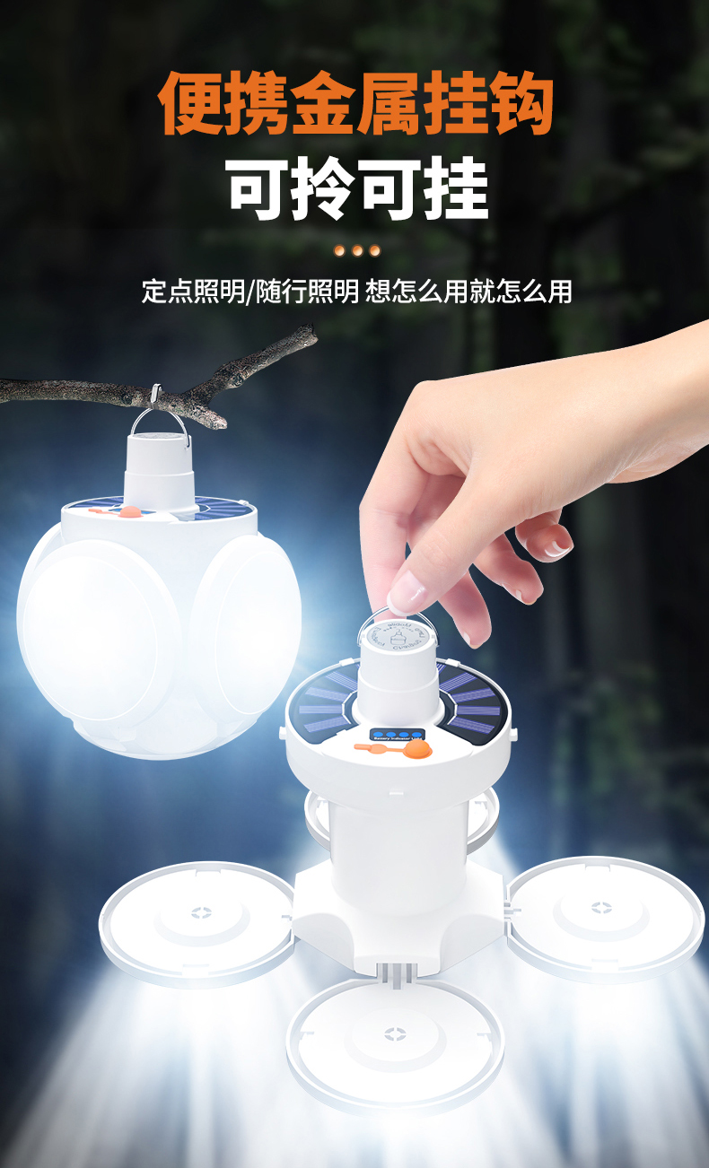 ✠太陽能足球燈可折疊戶外露營照明帳篷氛圍野充電馬燈超長續航應
