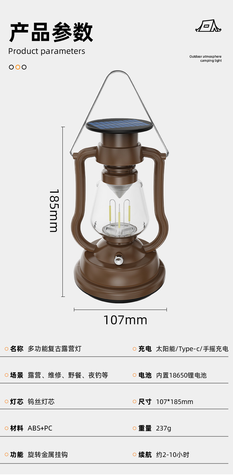 手搖太陽能直充馬燈野營燈露營燈老式復古露營野營帳篷氛圍燈馬燈