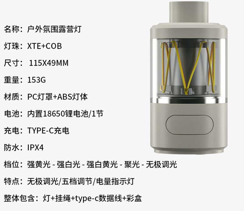 野營燈氛圍燈戶外露營燈野營手提帳篷燈長續航充電照明燈可攜式