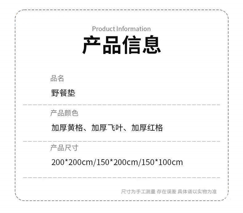 | 顔色 | 【紅格100*150cm】★加厚600D牛津【雙面防水無異味】圍坐3人 |