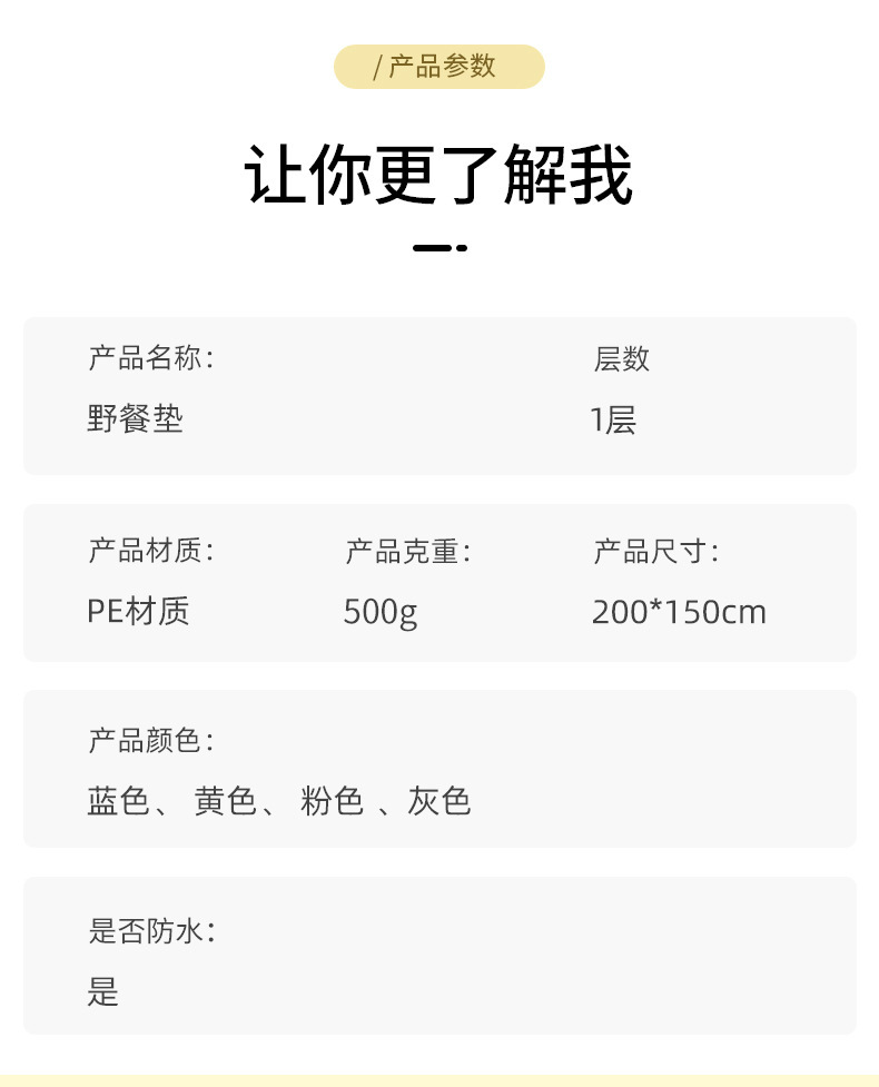 | 運動戶外項目 | 野營,騎行,爬山,遠足,看球,野餐 |