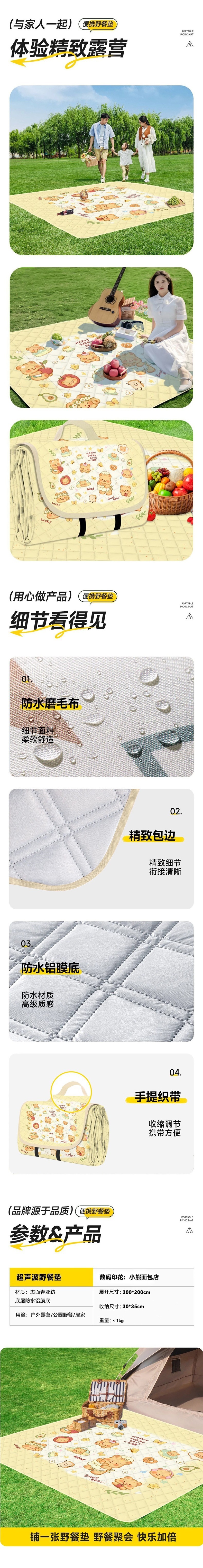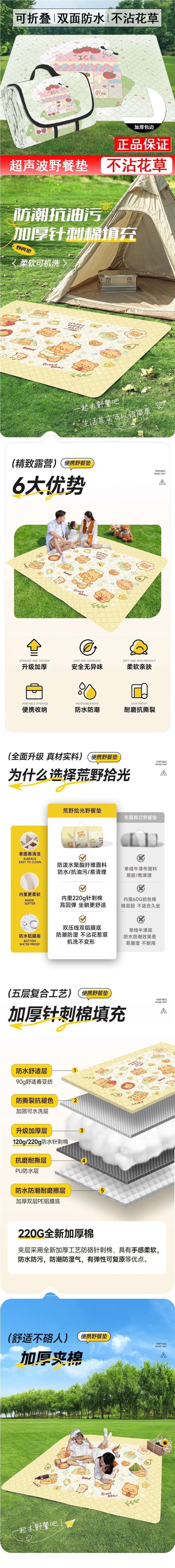 新客優惠加厚超音波野餐墊戶外春遊地墊野墊可攜式防水可折疊