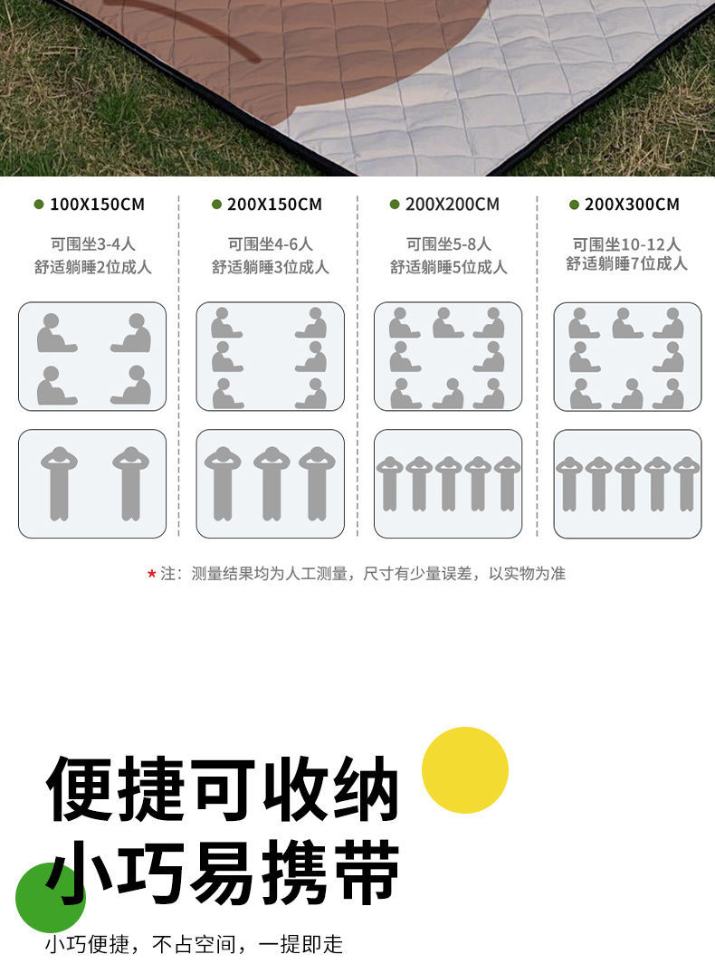 超大號野餐墊防潮墊可折疊款可攜式沙灘墊帳篷露營草坪野營地墊