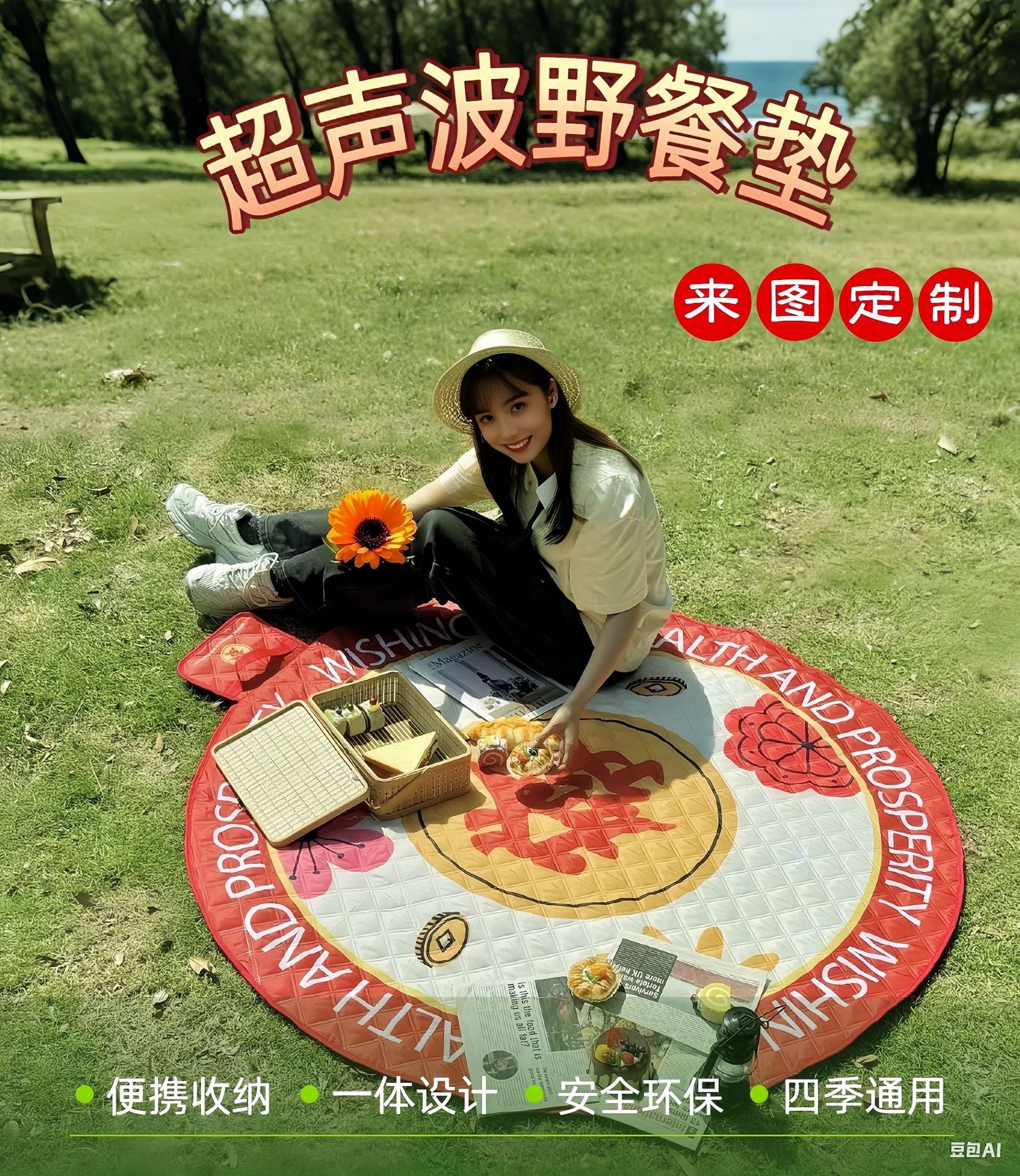 超音波野餐墊加厚防水圓形防潮墊子帳篷地墊露營野餐地布