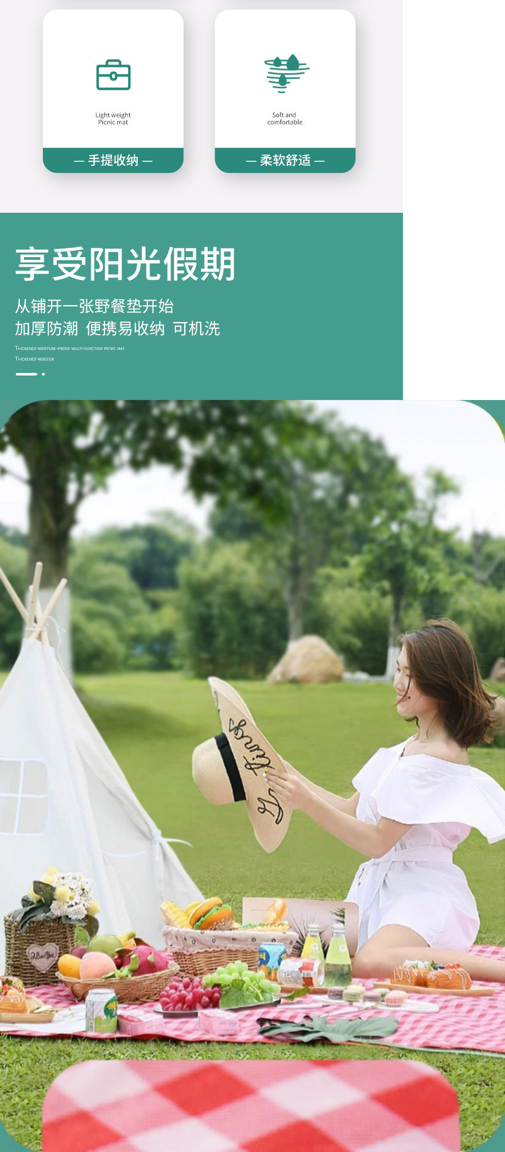 | 顔色 | 超音波野餐墊--綠白格*無拼接 |