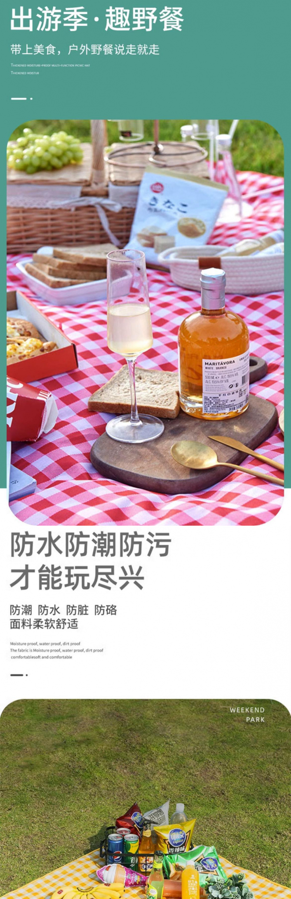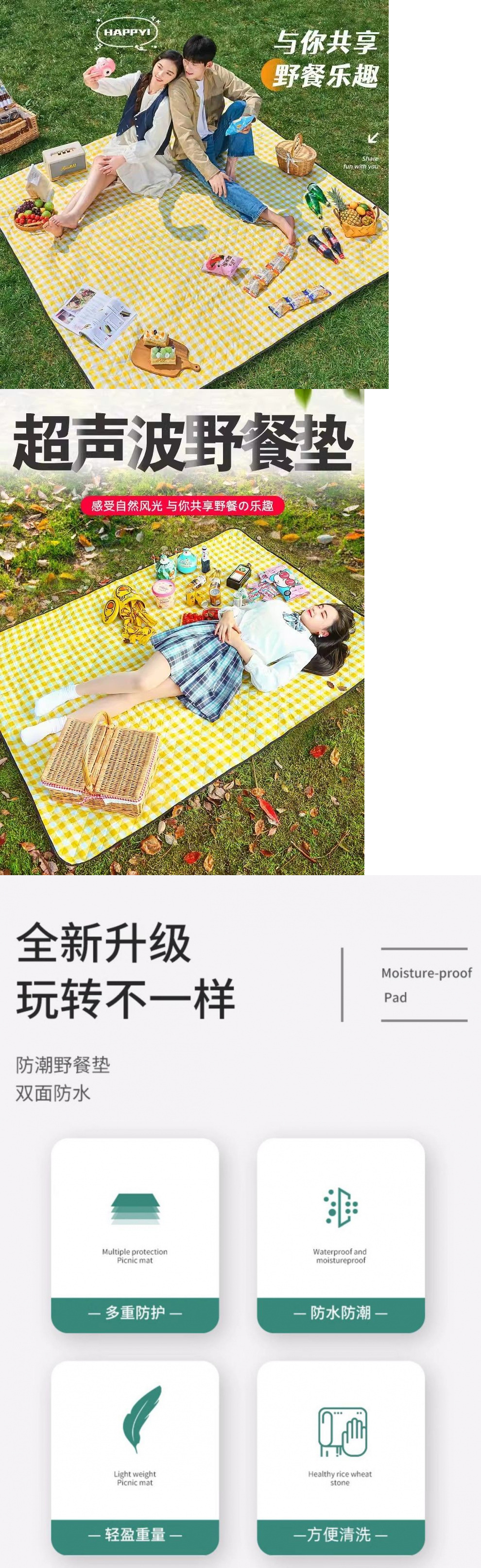 野餐墊防潮墊加厚春遊墊子超音波戶外可攜式野外露營草可折疊
