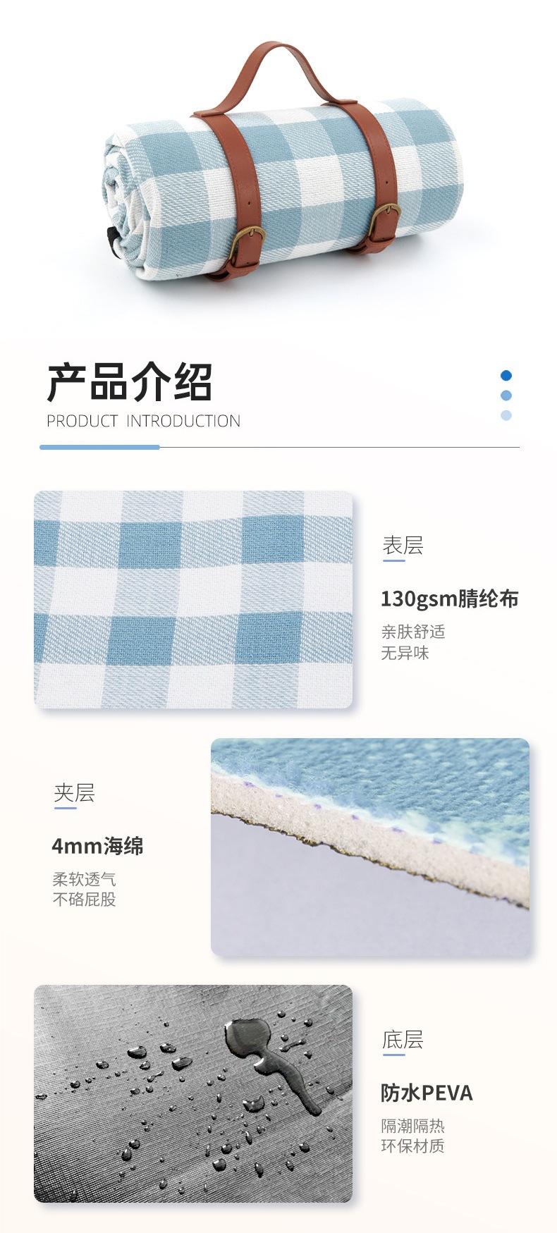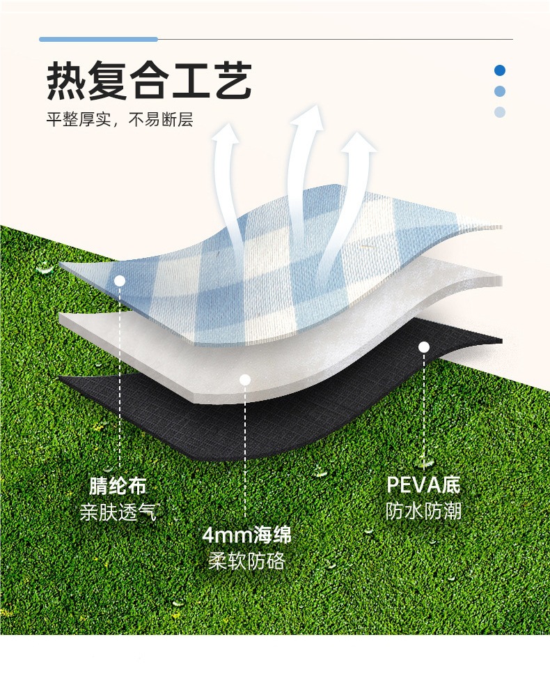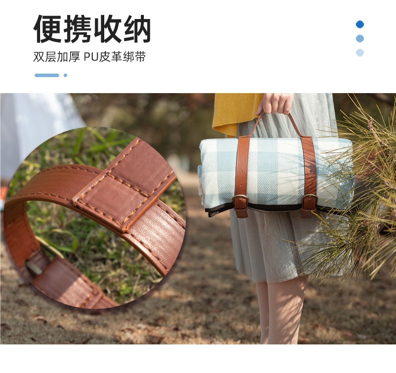 戶外郊遊露營防潮墊野餐墊加厚皮革綁帶野餐墊腈綸野營徒步地蓆