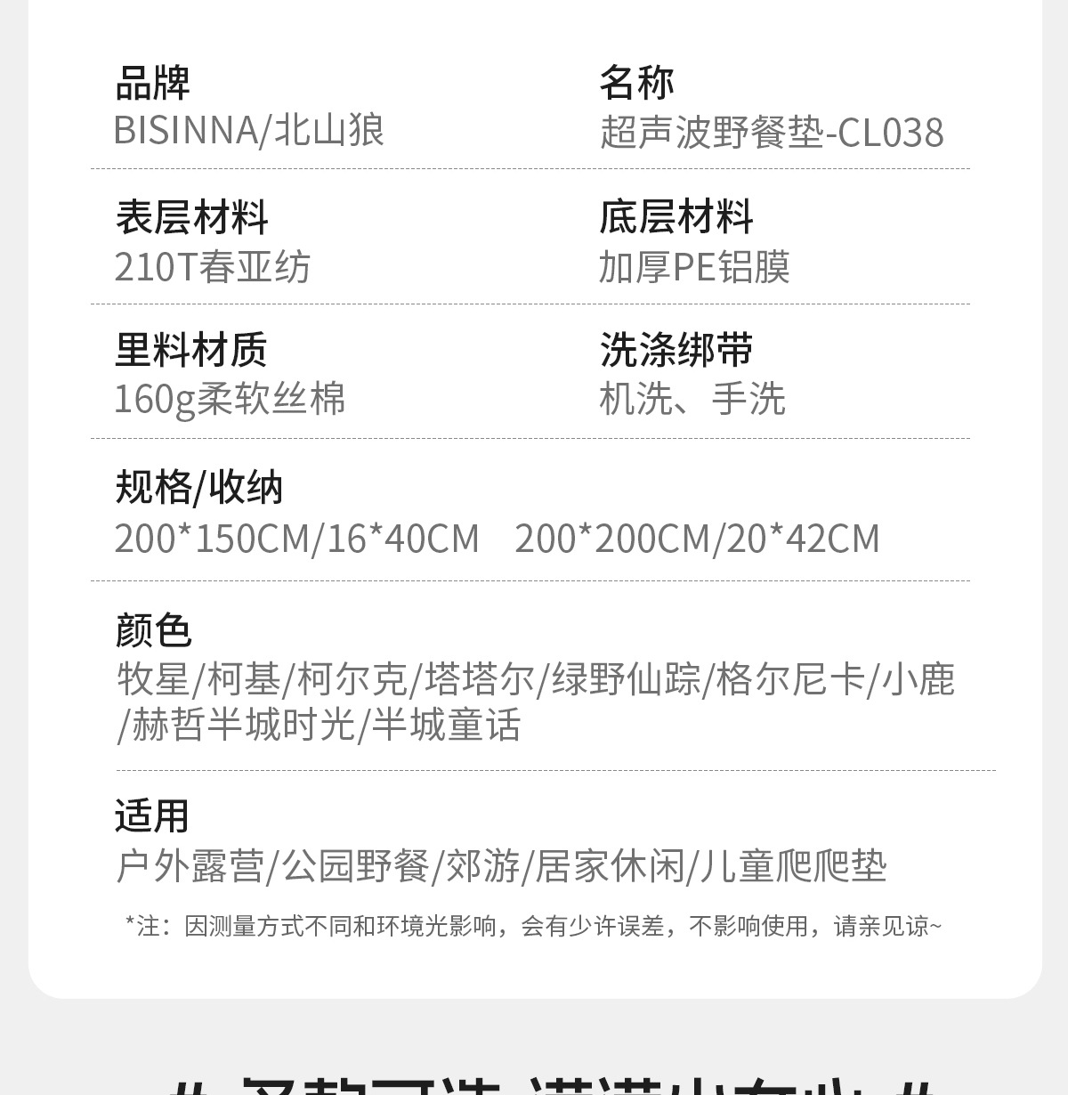 | 防潮墊種類 | 野餐墊 |
