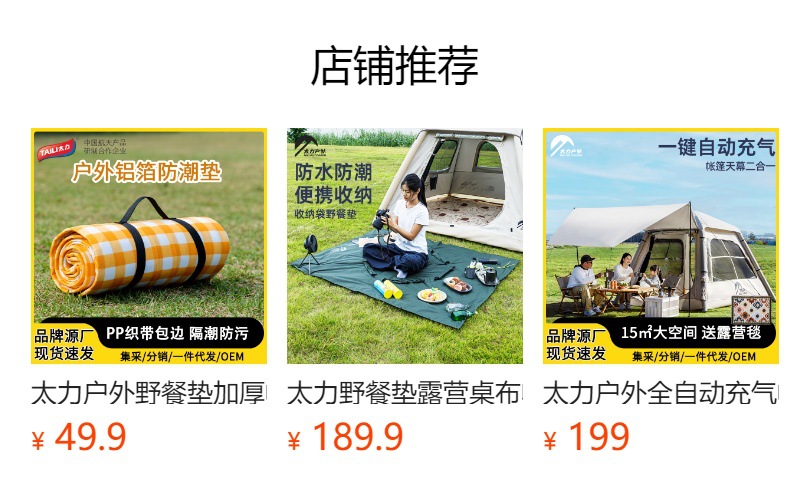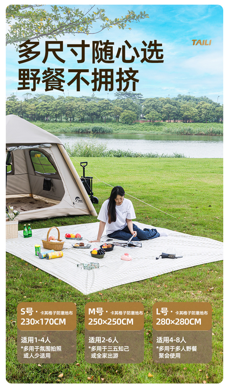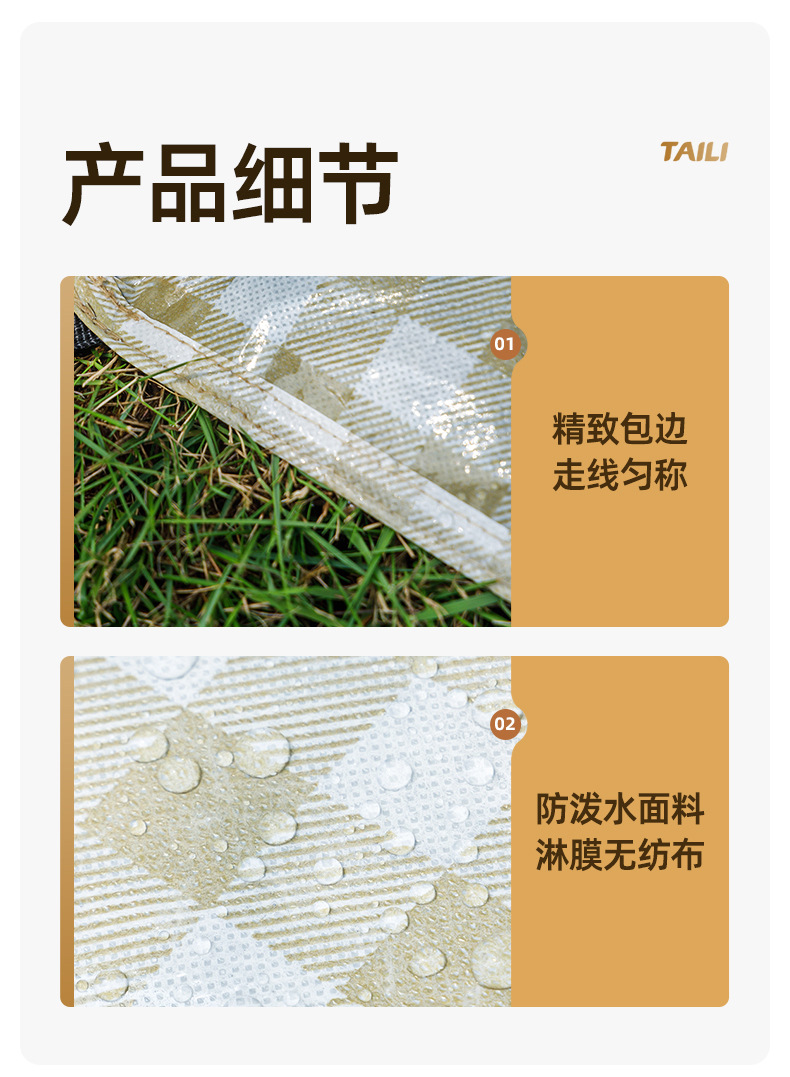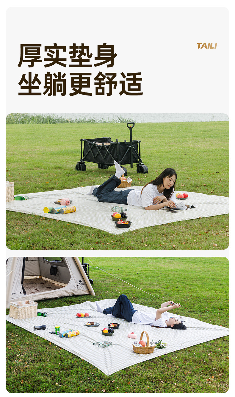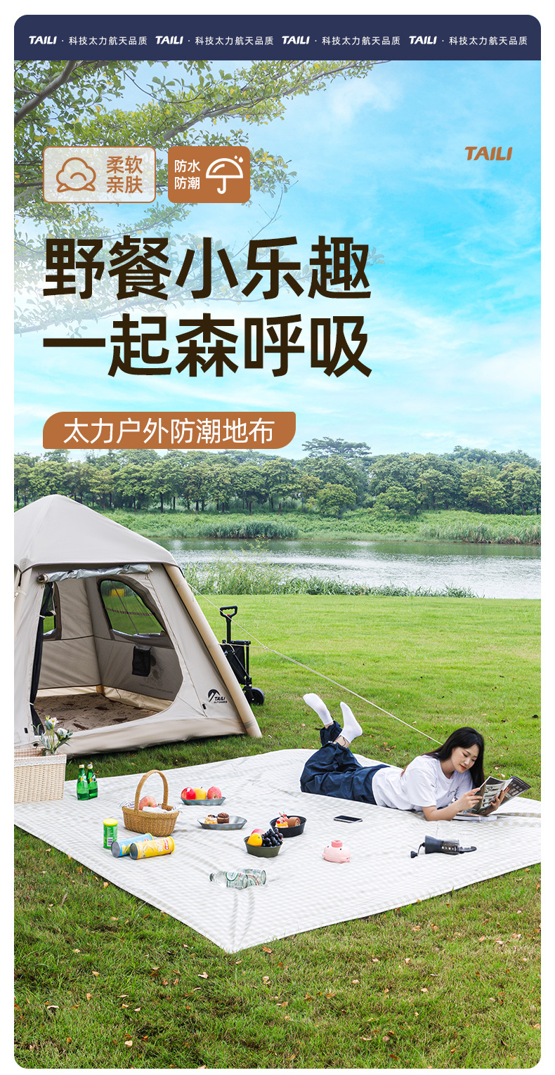 太力地布帳篷用露營野餐墊地毯易清洗隔髒防油沙灘墊防雨可收納