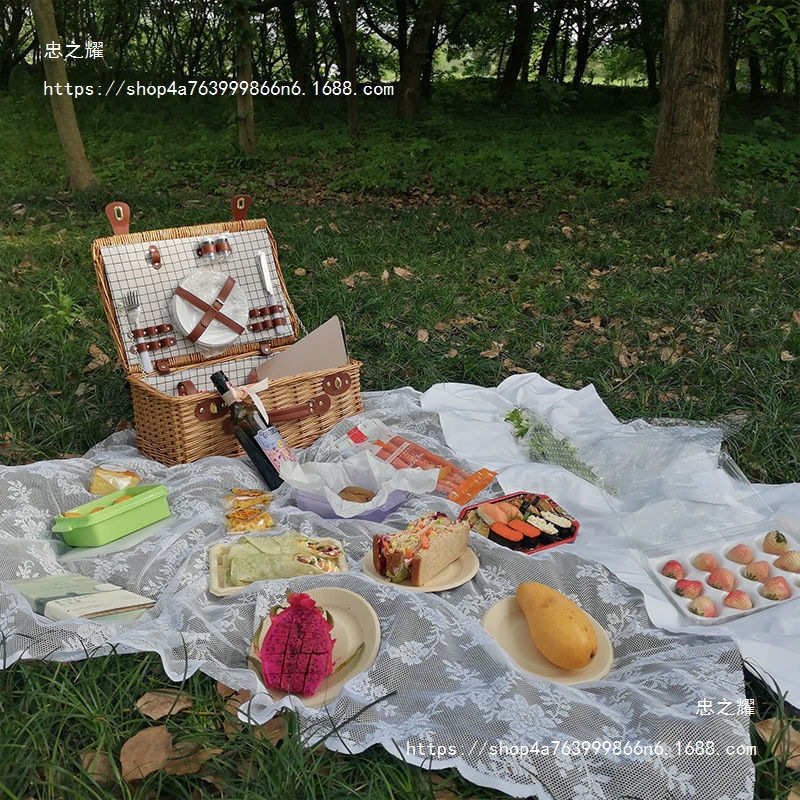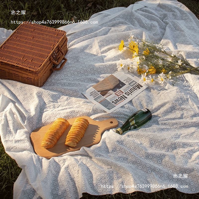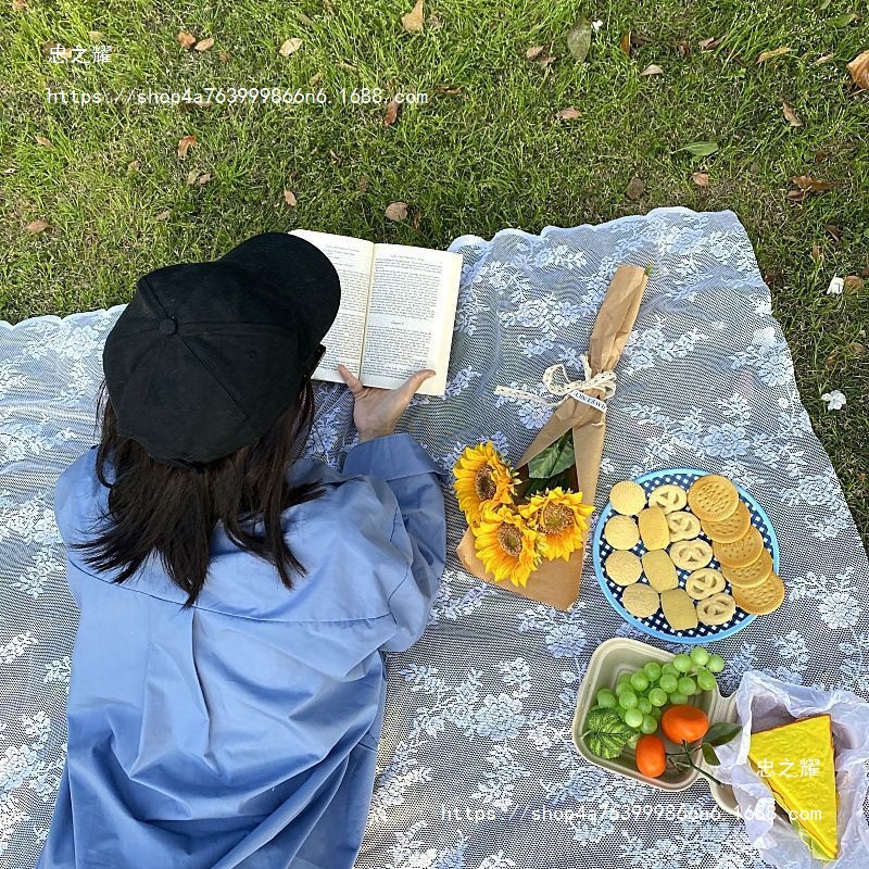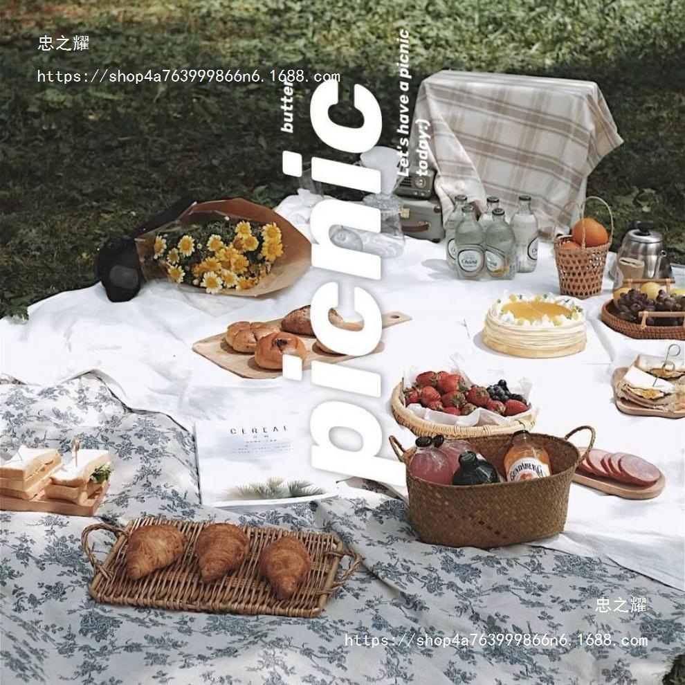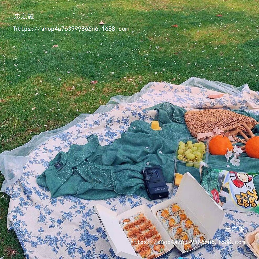 法式戶外露營野餐布藍色碎花網紅拍照道具裝備春遊公園田園便郊遊