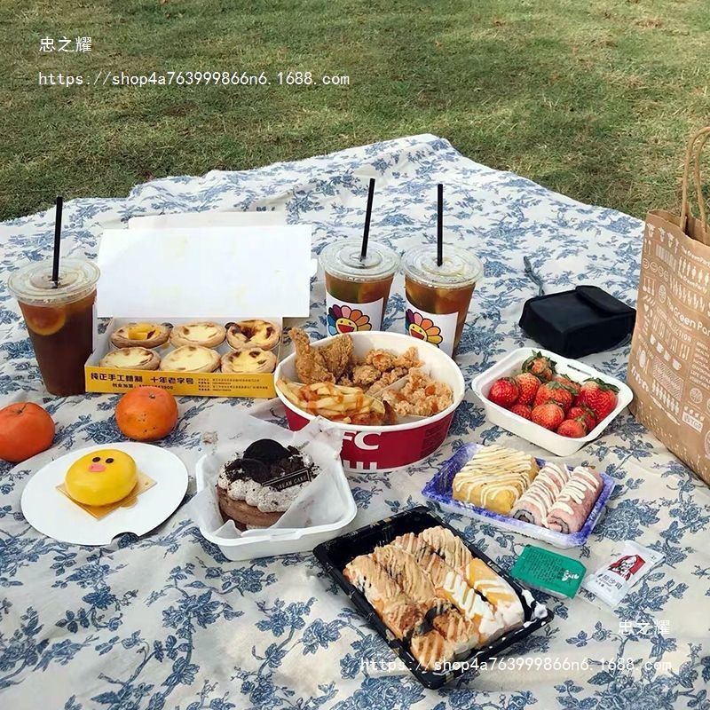 法式戶外露營野餐布春遊公園田園便郊遊藍色碎花網紅