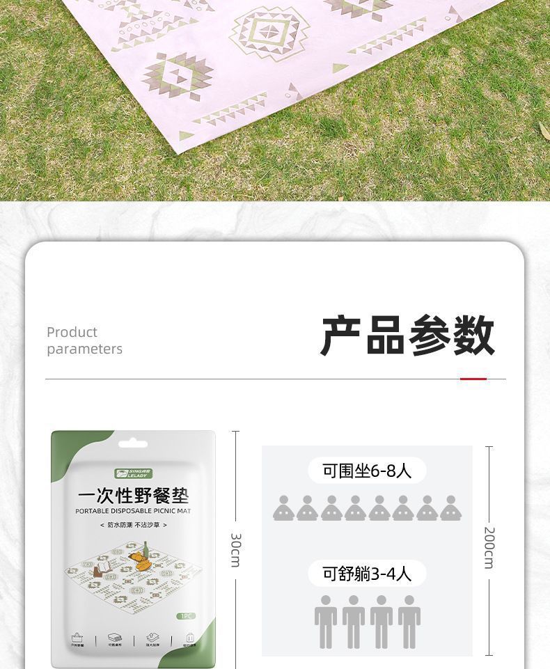 | 顔色 | 一次性野餐墊隔髒戶外防潮墊2米X1.5米 |