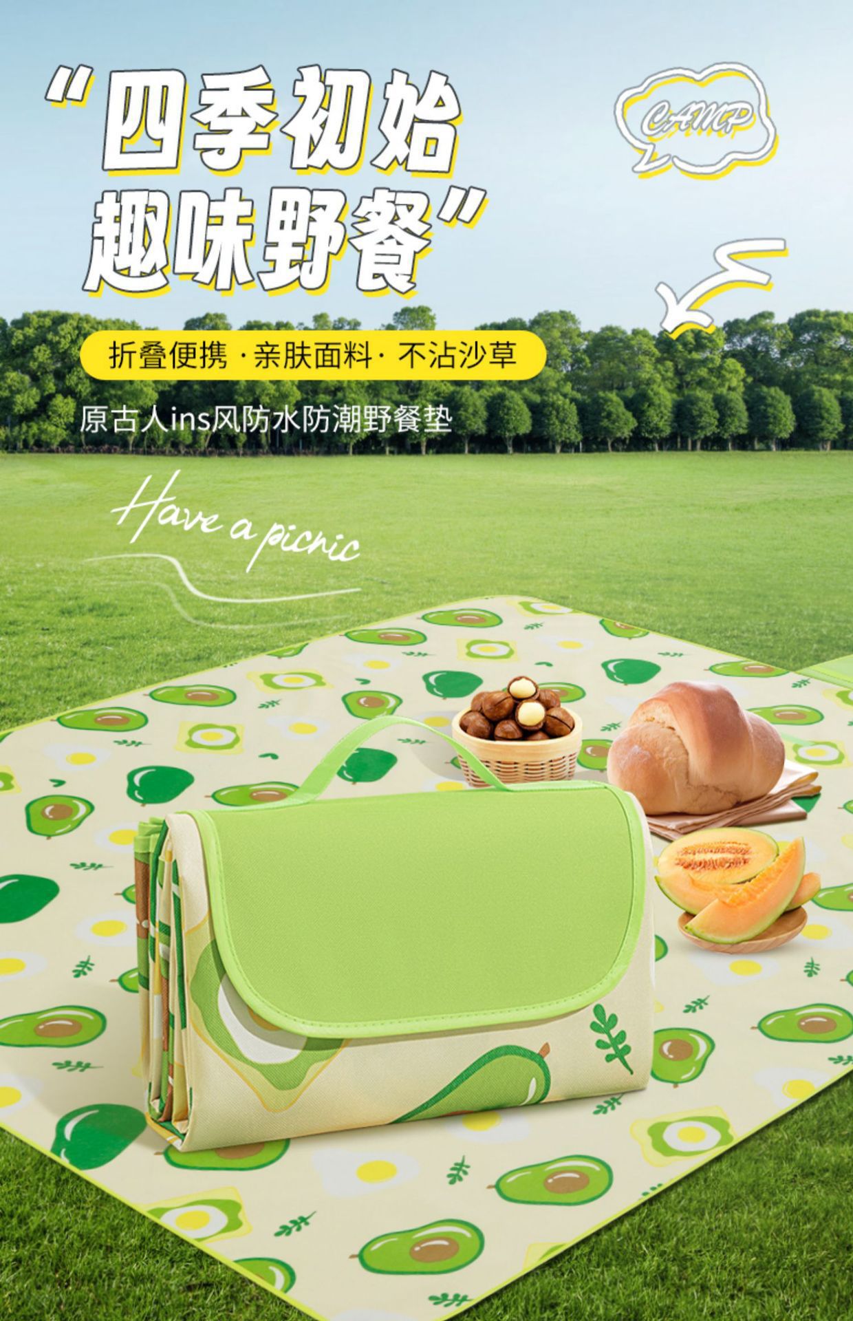 野餐墊防潮墊加厚沙灘墊戶外露營墊可攜式折疊野炊草坪墊子戶外防水
