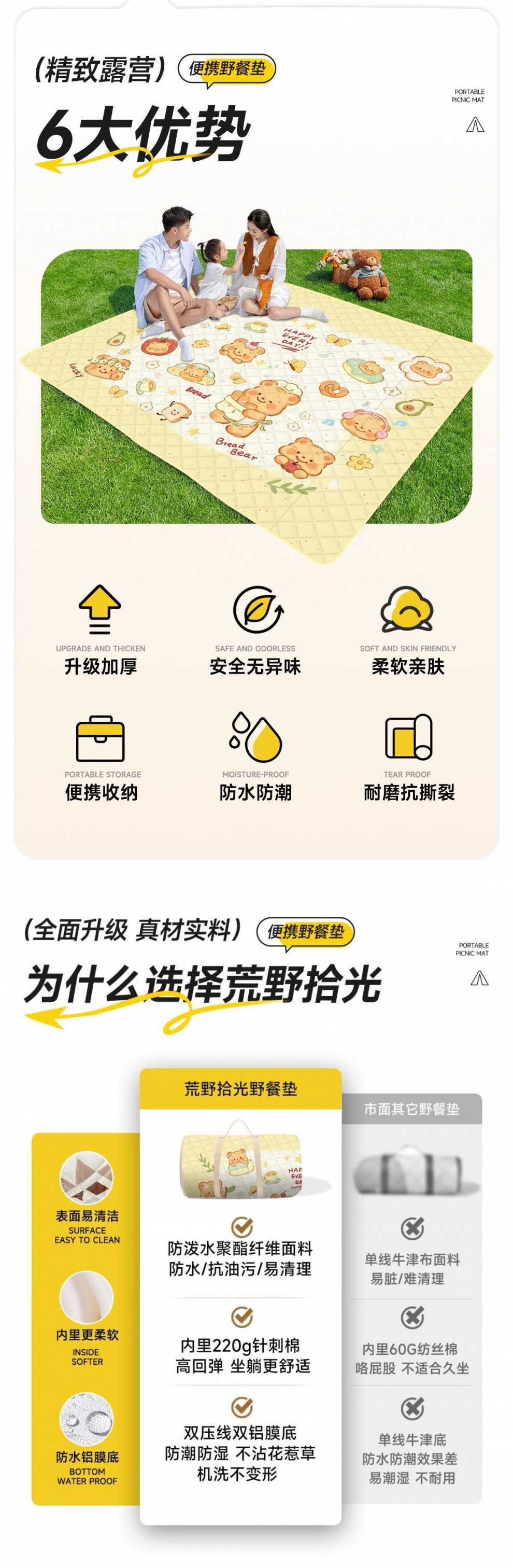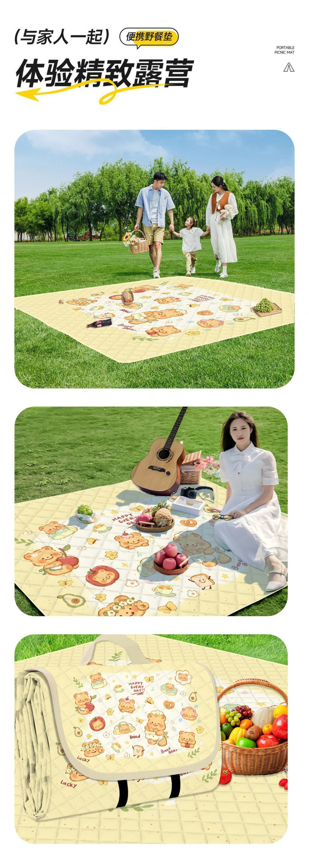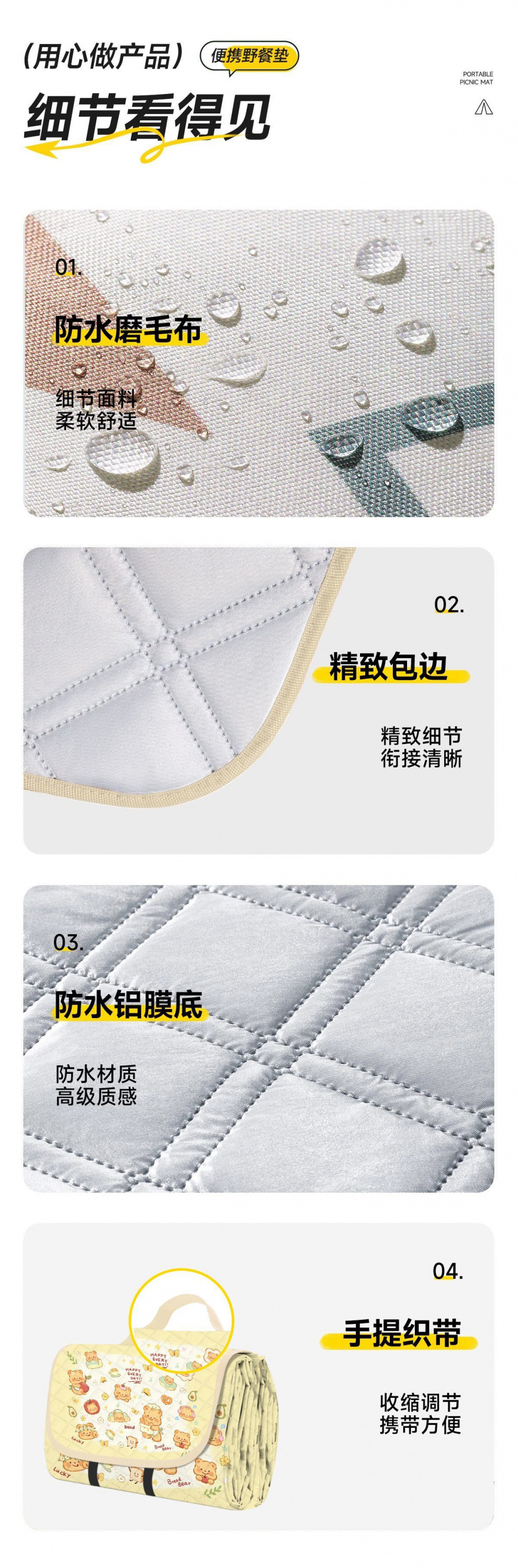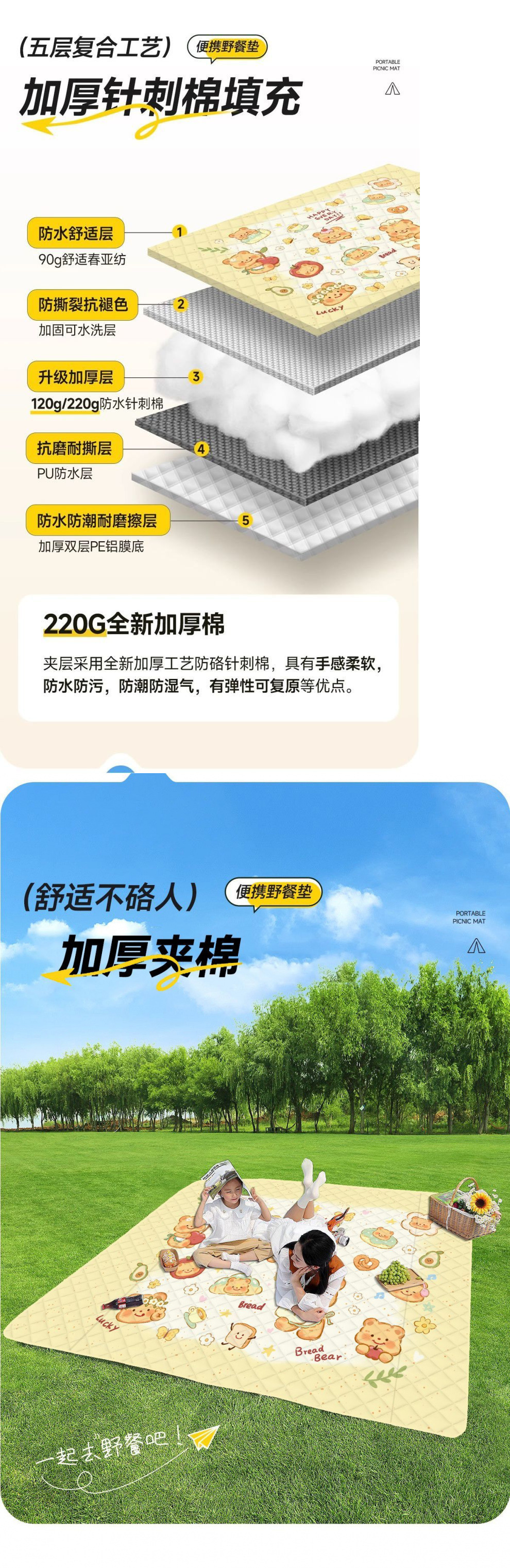 加厚超音波野餐墊戶外春遊地墊野墊可攜式防水可折疊