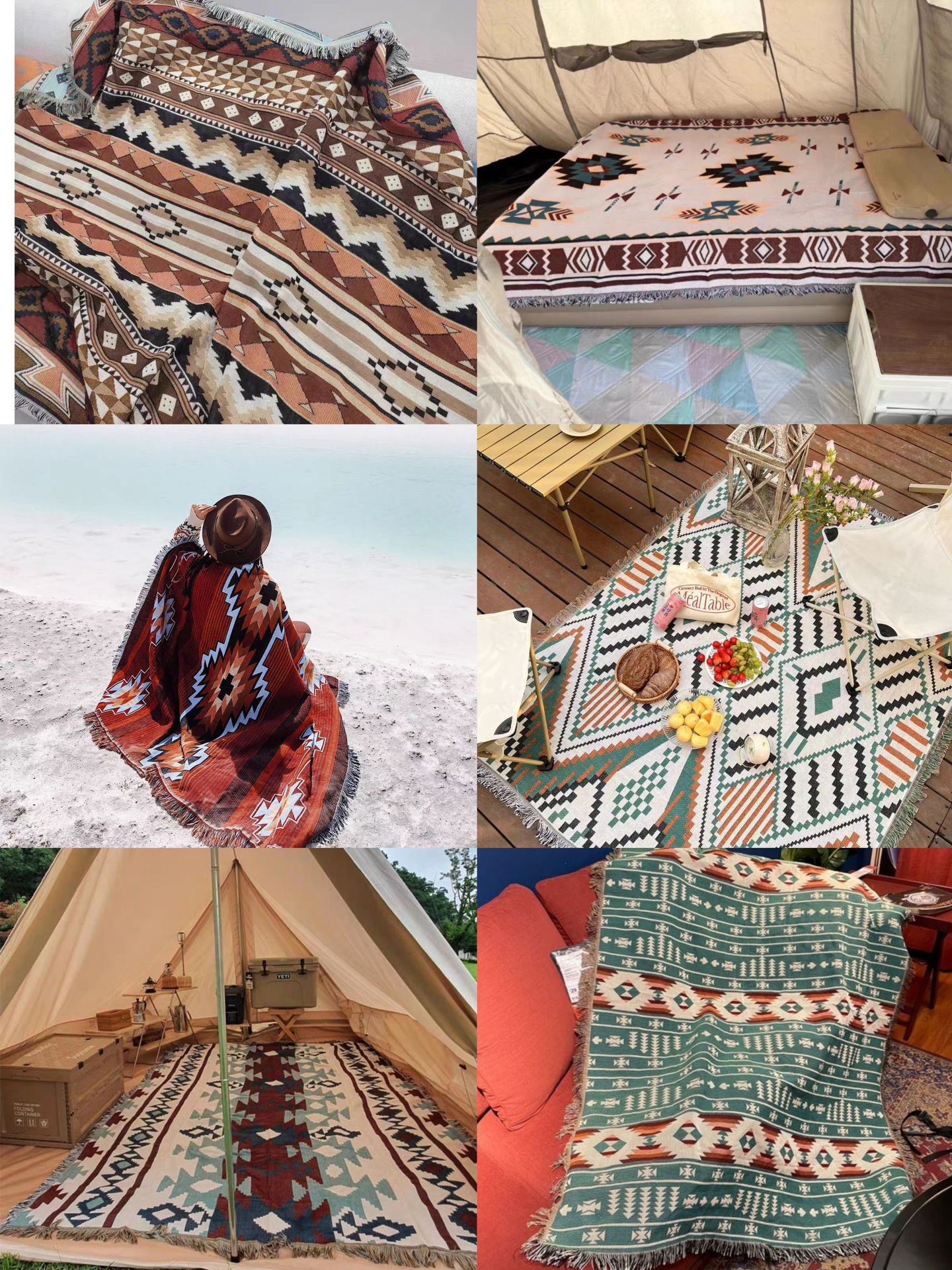 戶外野餐毯波西米亞帳篷野營墊桌布露營毯子地毯沙發毯蛋卷桌毛毯