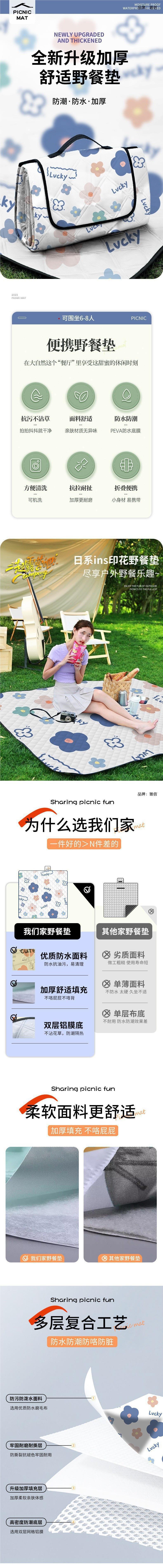 新款野餐墊戶外露營野餐坐墊公園春遊防潮墊防水野餐墊沙灘露營墊