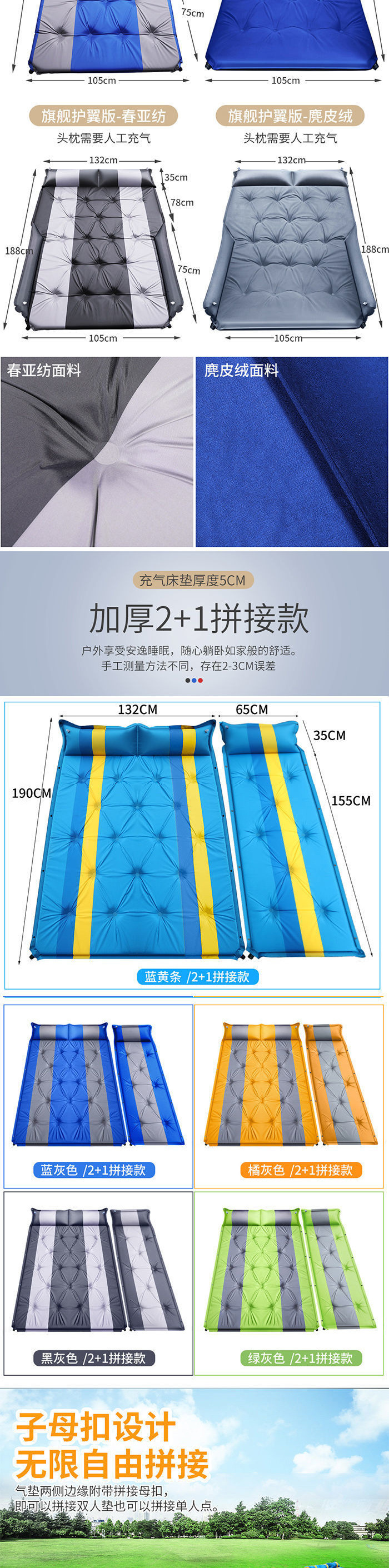 全自動充氣墊床露營帳篷墊防潮墊戶外充氣睡墊可拼接加寬充氣地墊