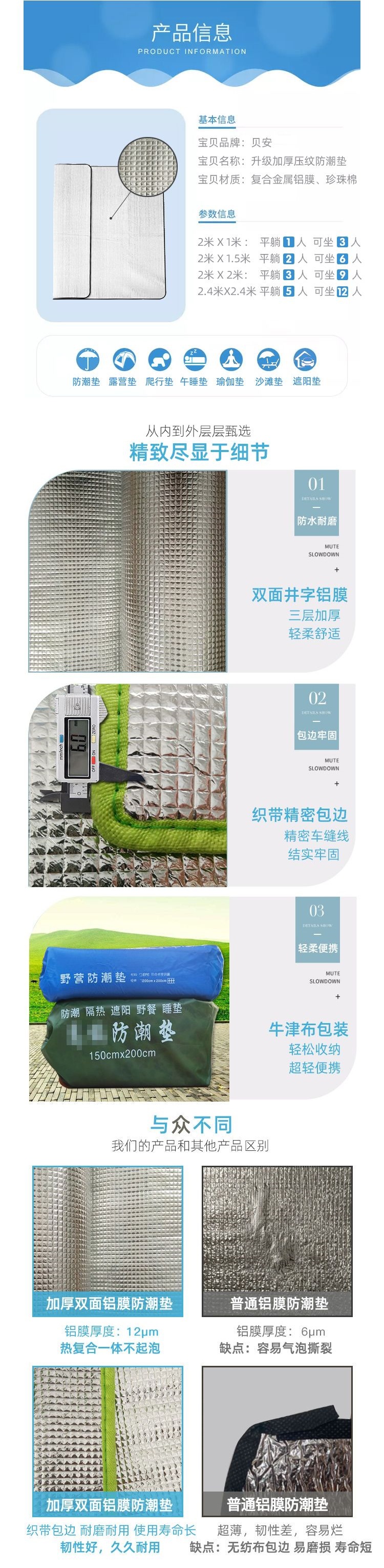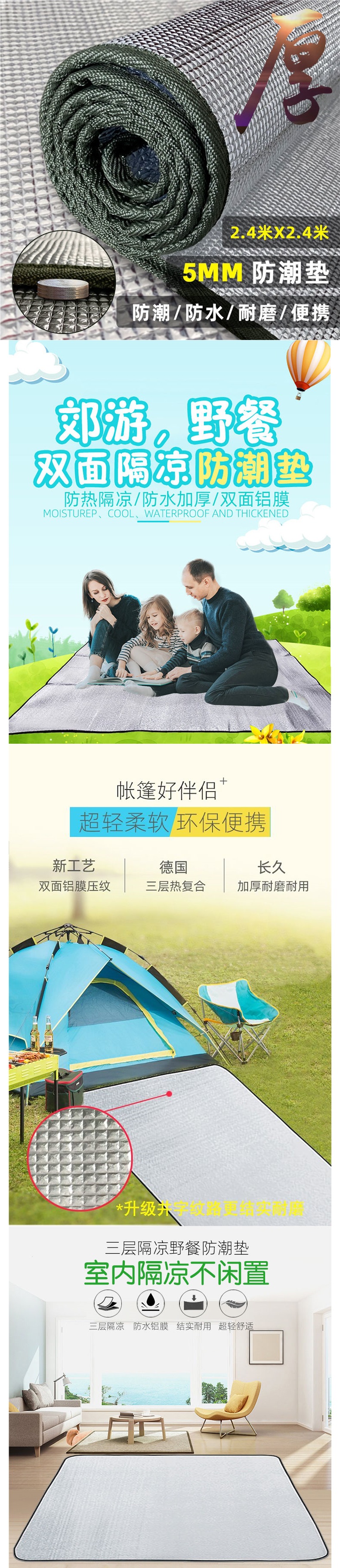 戶外郊遊防潮墊可攜式野餐墊加厚野外露營帳篷草坪墊子地墊打地鋪睡