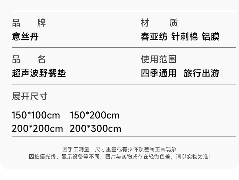 超音波野餐墊防潮墊戶外露營帳篷內墊沙灘墊可攜式野炊地墊