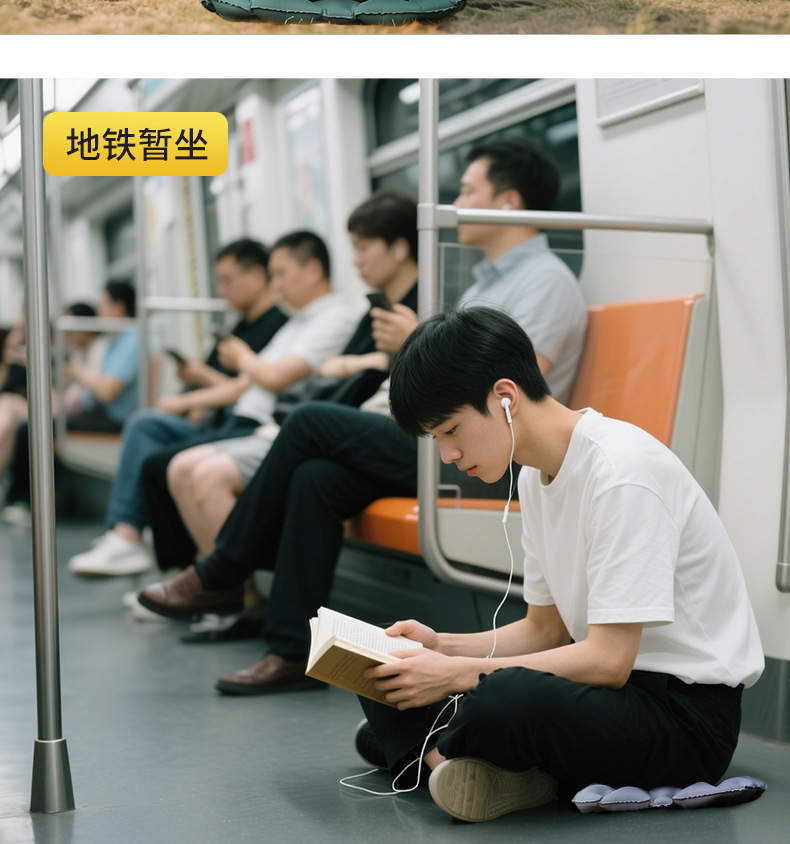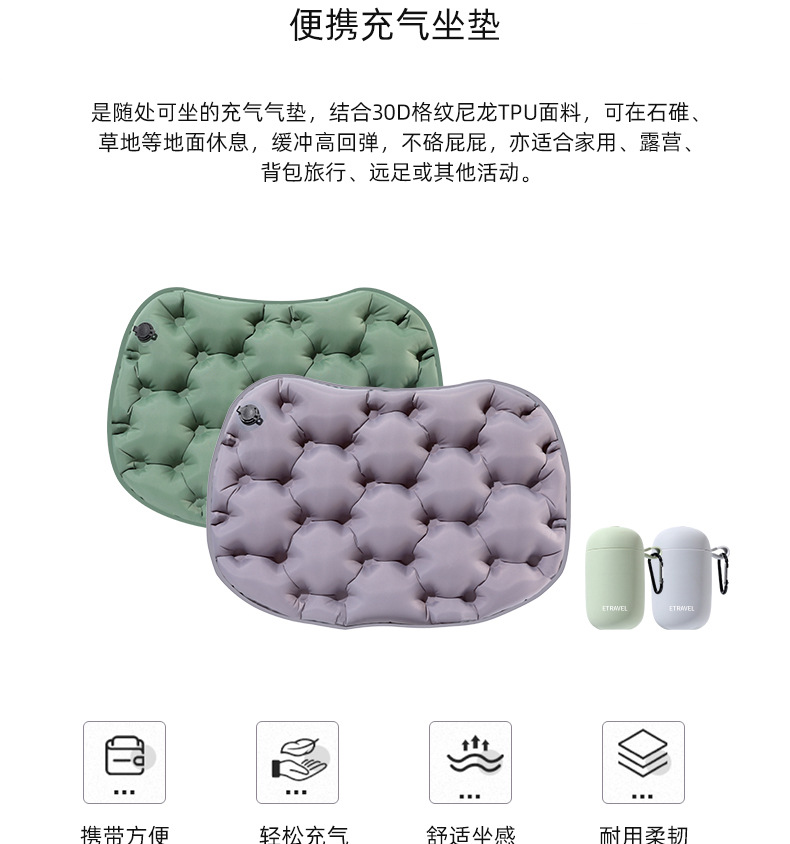 按壓充氣坐墊戶外露營徒步可攜式飛機高鐵屁墊演唱會增高久坐防痛
