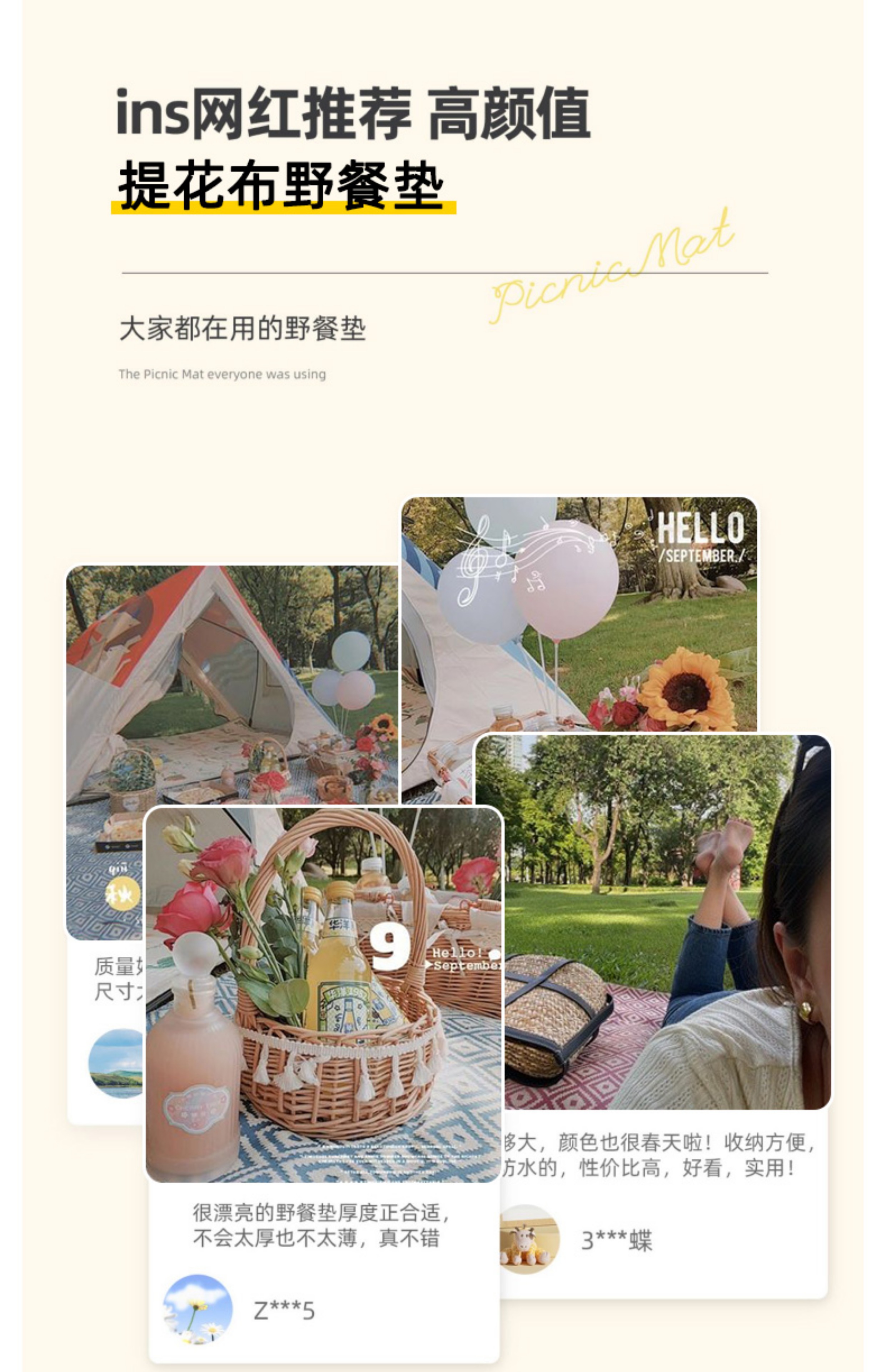 野餐墊防潮墊帳篷墊戶外地墊墊背沙灘墊加厚防水露營野餐布曬可攜式