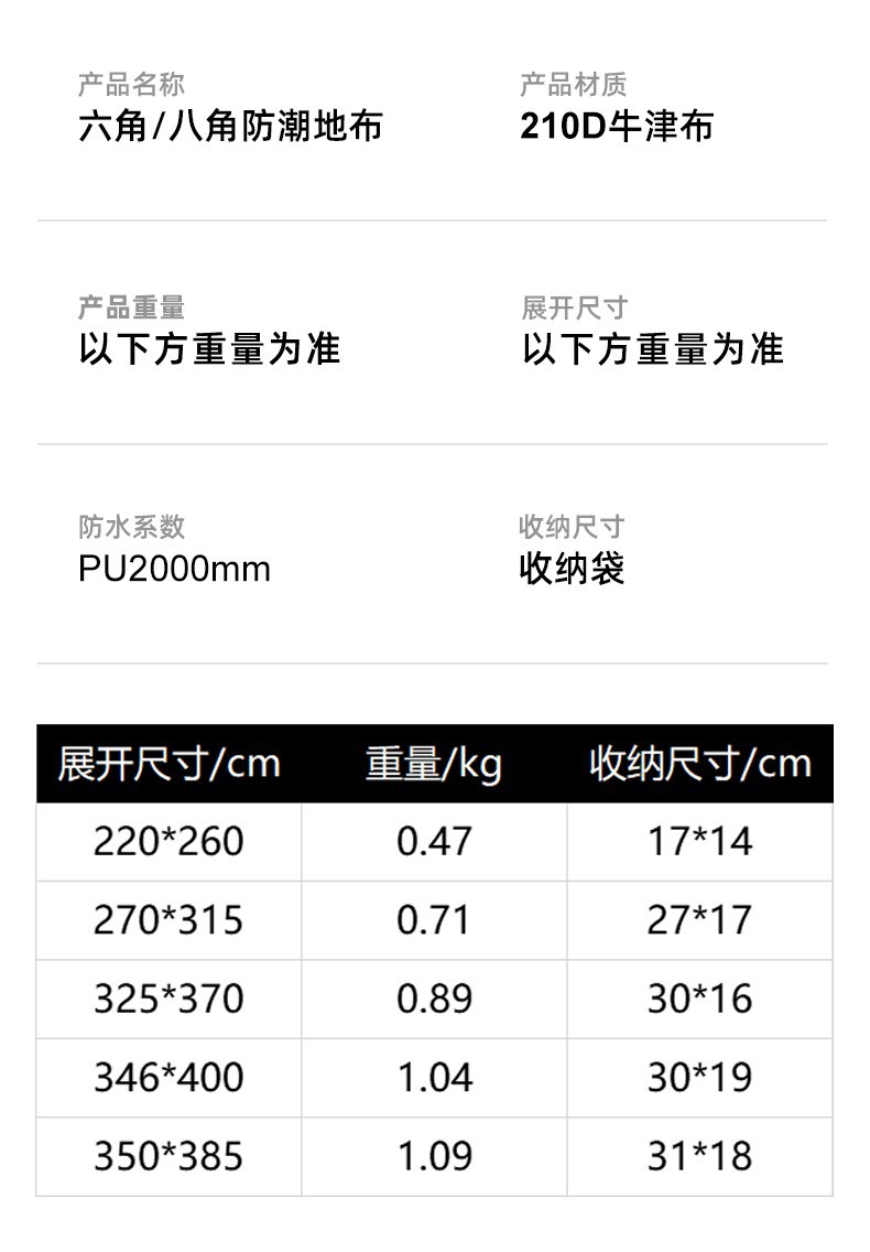 | 顔色 | 12角防潮地布【414*414】含地釘 |
