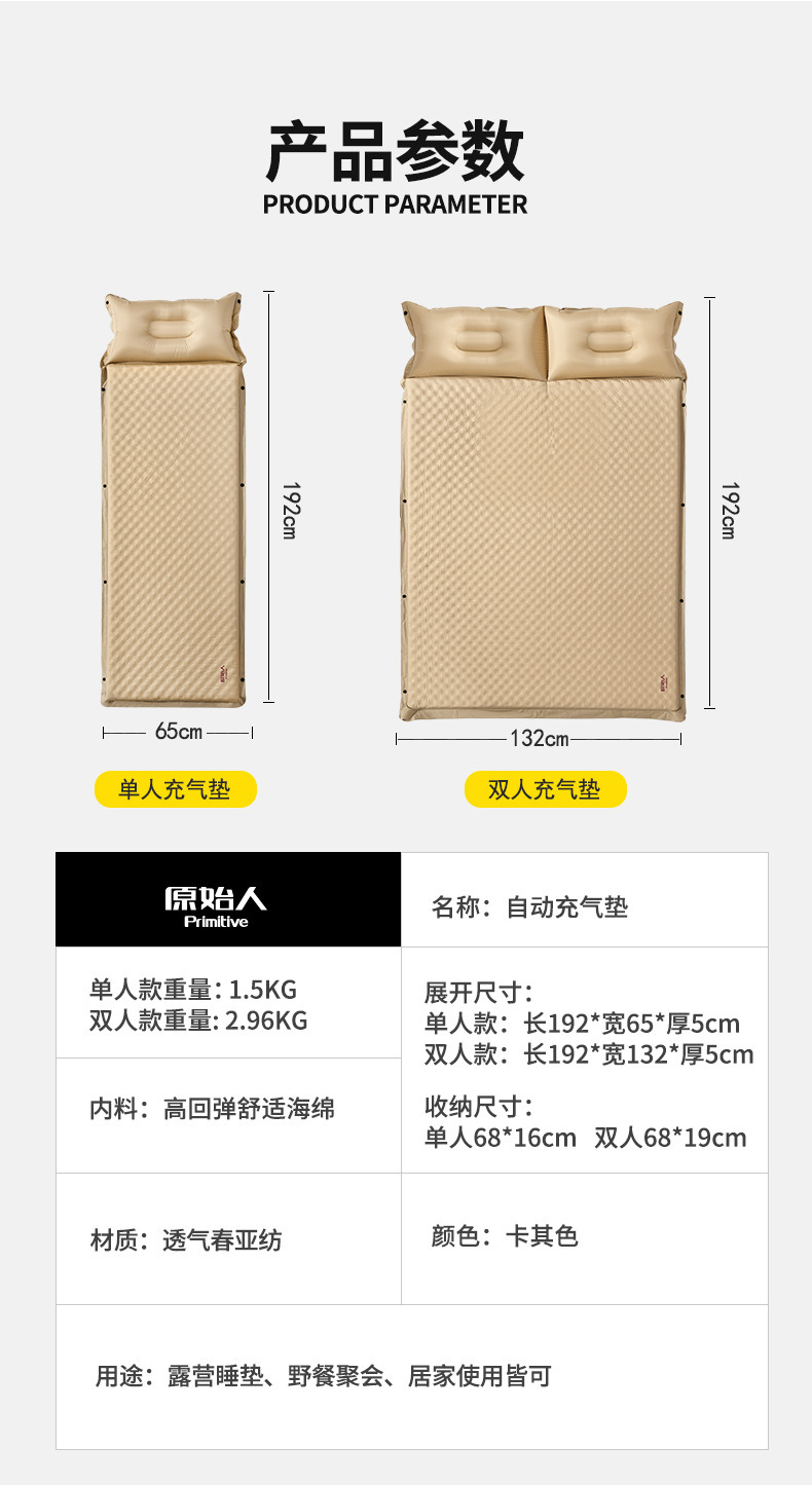 原始人露營充氣床墊戶外氣墊床打地鋪家用自動充氣床野營帳篷地墊