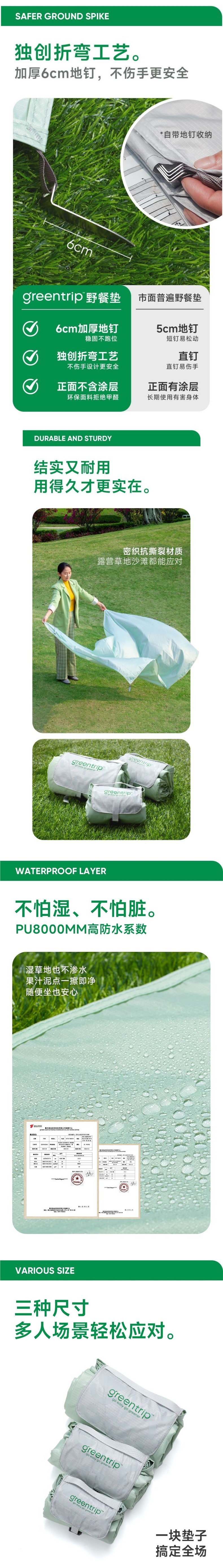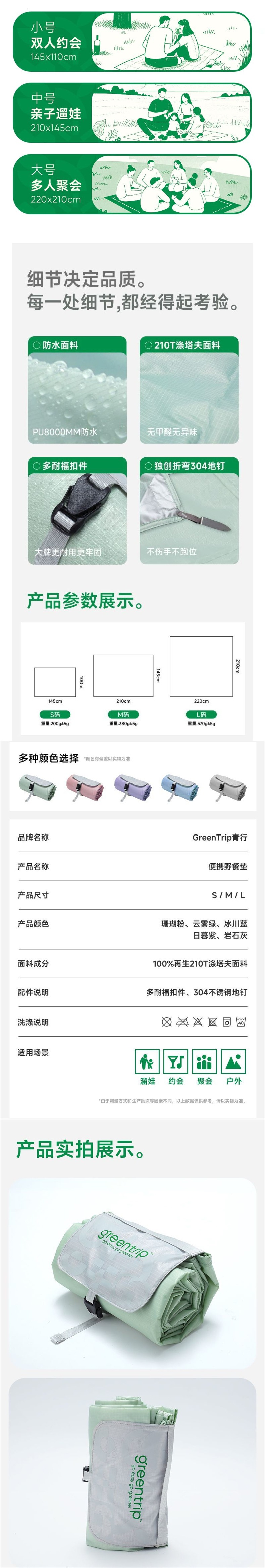 超輕可攜式野餐墊口袋地墊布防水潮露營戶外沙灘公園墊子兒童環保小