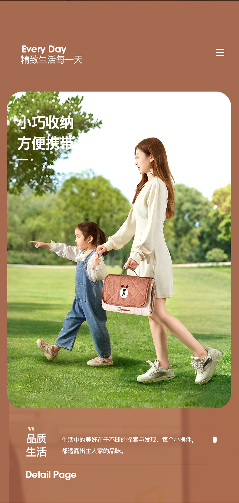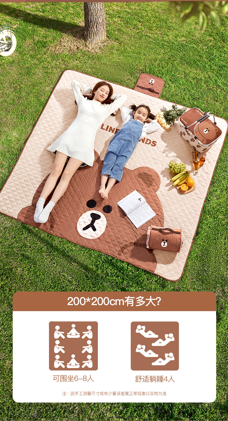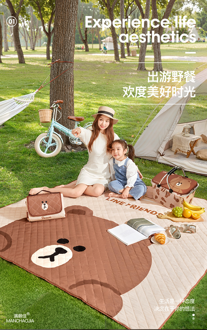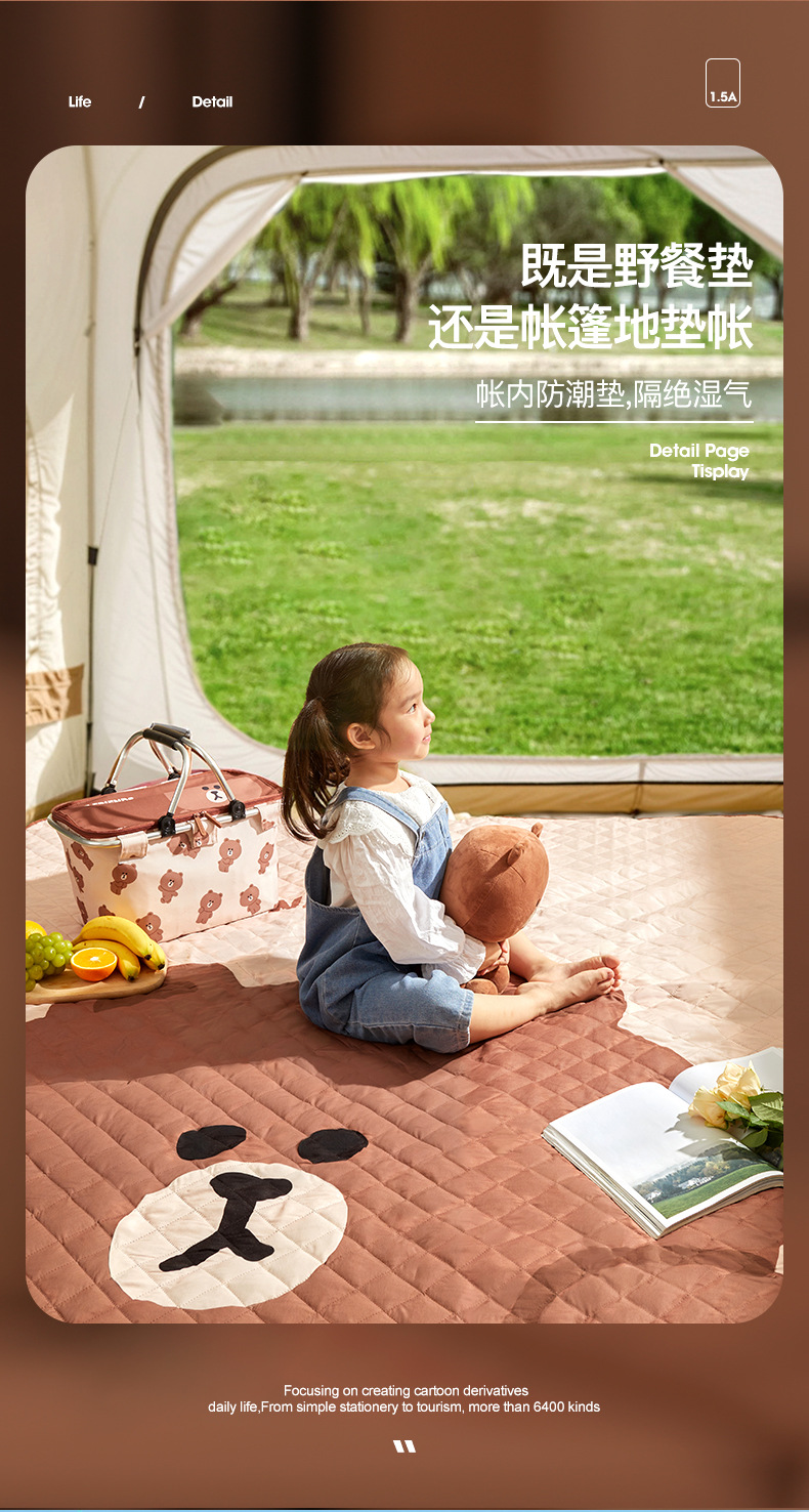 布朗熊野餐墊戶外露營墊子加厚防潮墊可折疊坐墊沙灘墊子可攜式地墊