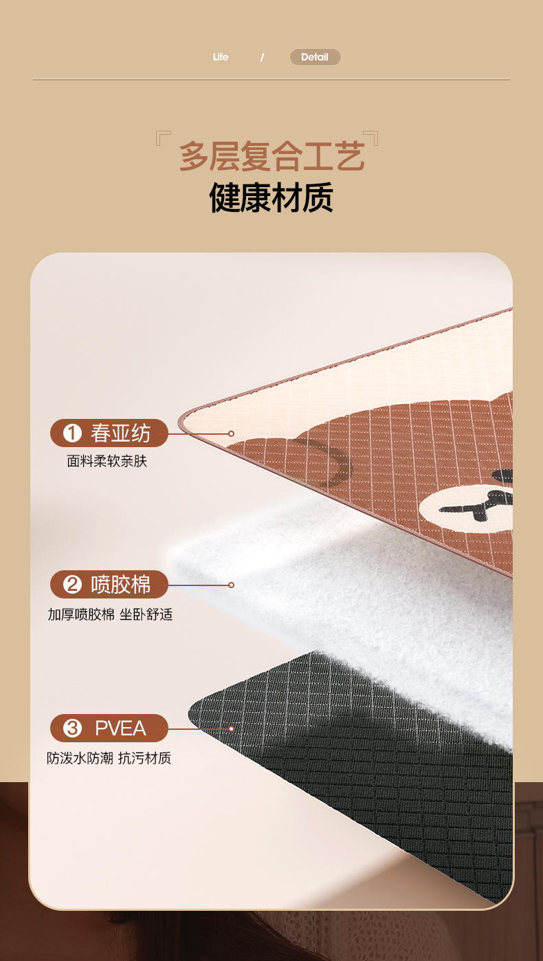 | 面料 | PVEA+春亞紡+仿絲棉 |