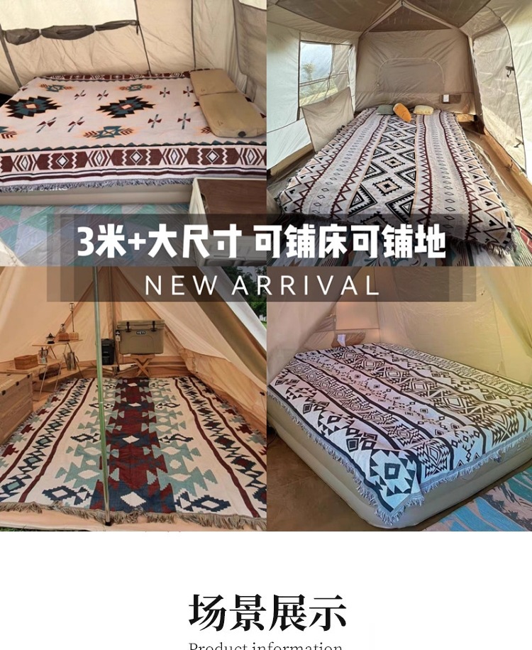 露營毯毛毯戶外毯子午睡蓋毯床毯波西米亞帳篷地墊裝飾地毯沙發J^