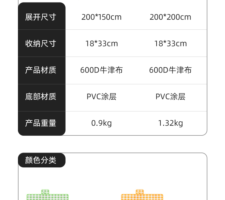 | 顔色 | 【mini野餐墊2個裝】黃白格0.5*0.5m(可噹坐墊)★ |