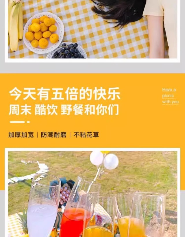| 顔色 | 加厚黃色格子2*2米【可坐6-8人】雙面防水/無異味. |