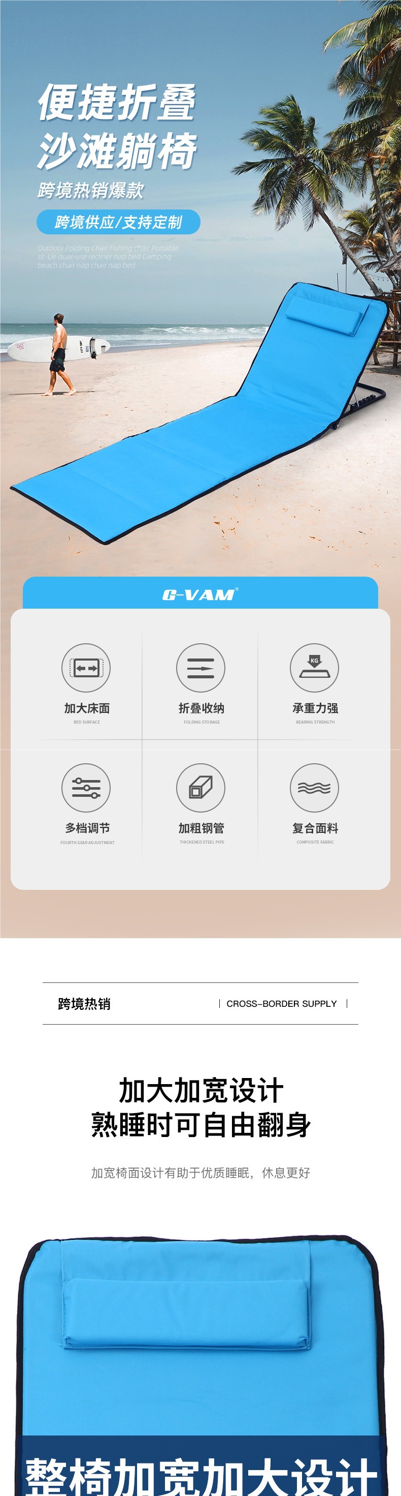 折疊沙灘調節靠背調節沙灘墊可攜式檔位日光浴躺椅戶外墊子.
