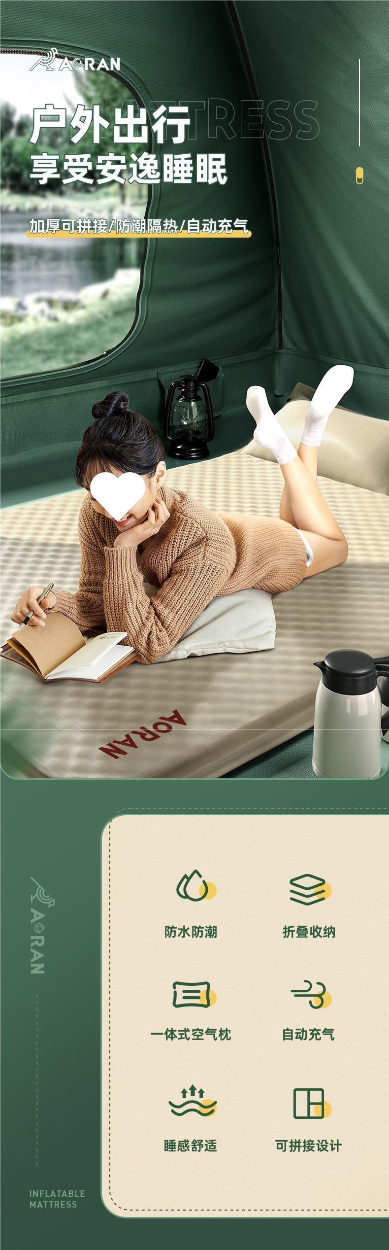 自動充氣床墊睡墊野營防潮墊戶外露營氣墊床帳篷地墊